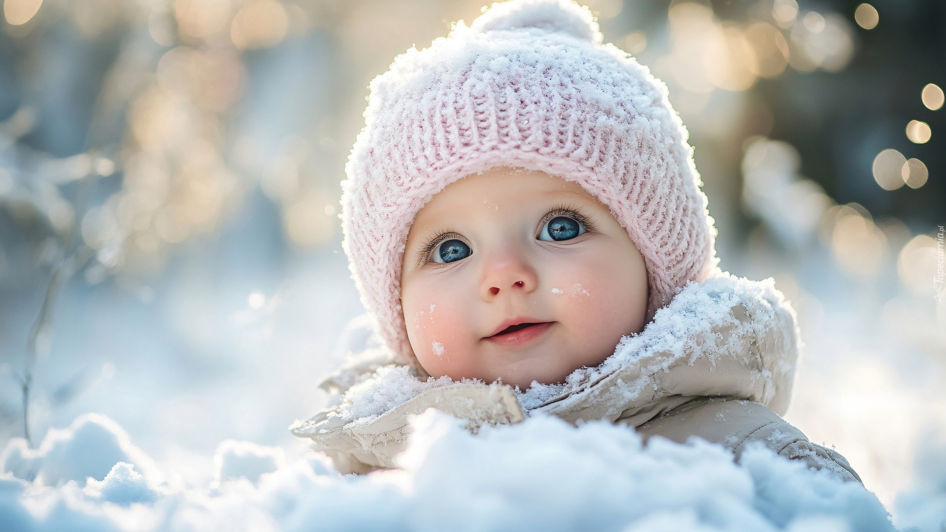 Edytor tapety: Małe dziecko w ośnieżonej czapce i kurtce