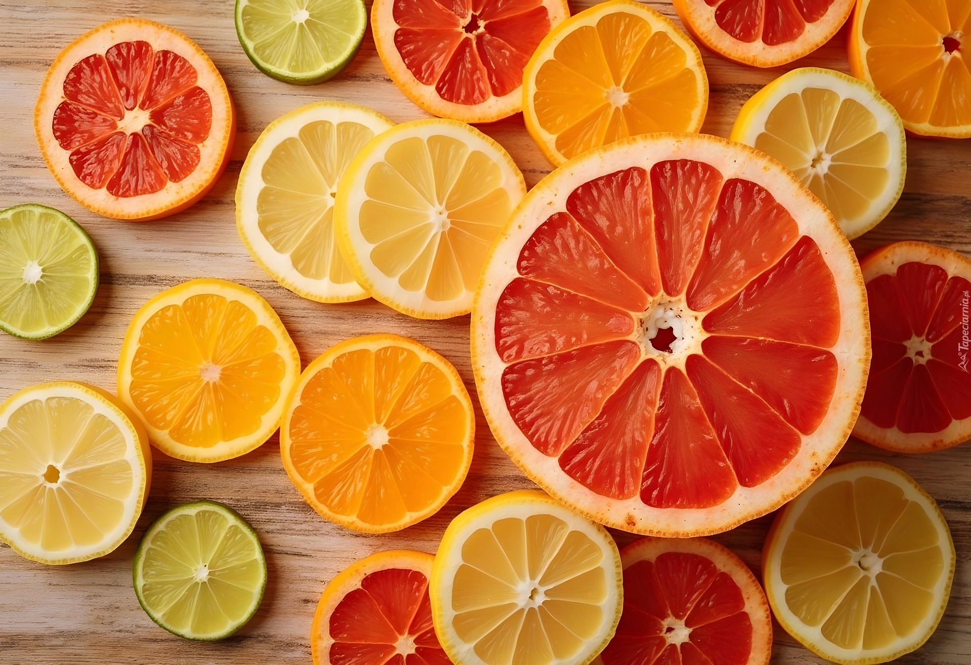 Edytor tapety: Plasterki cytrusów na deskach