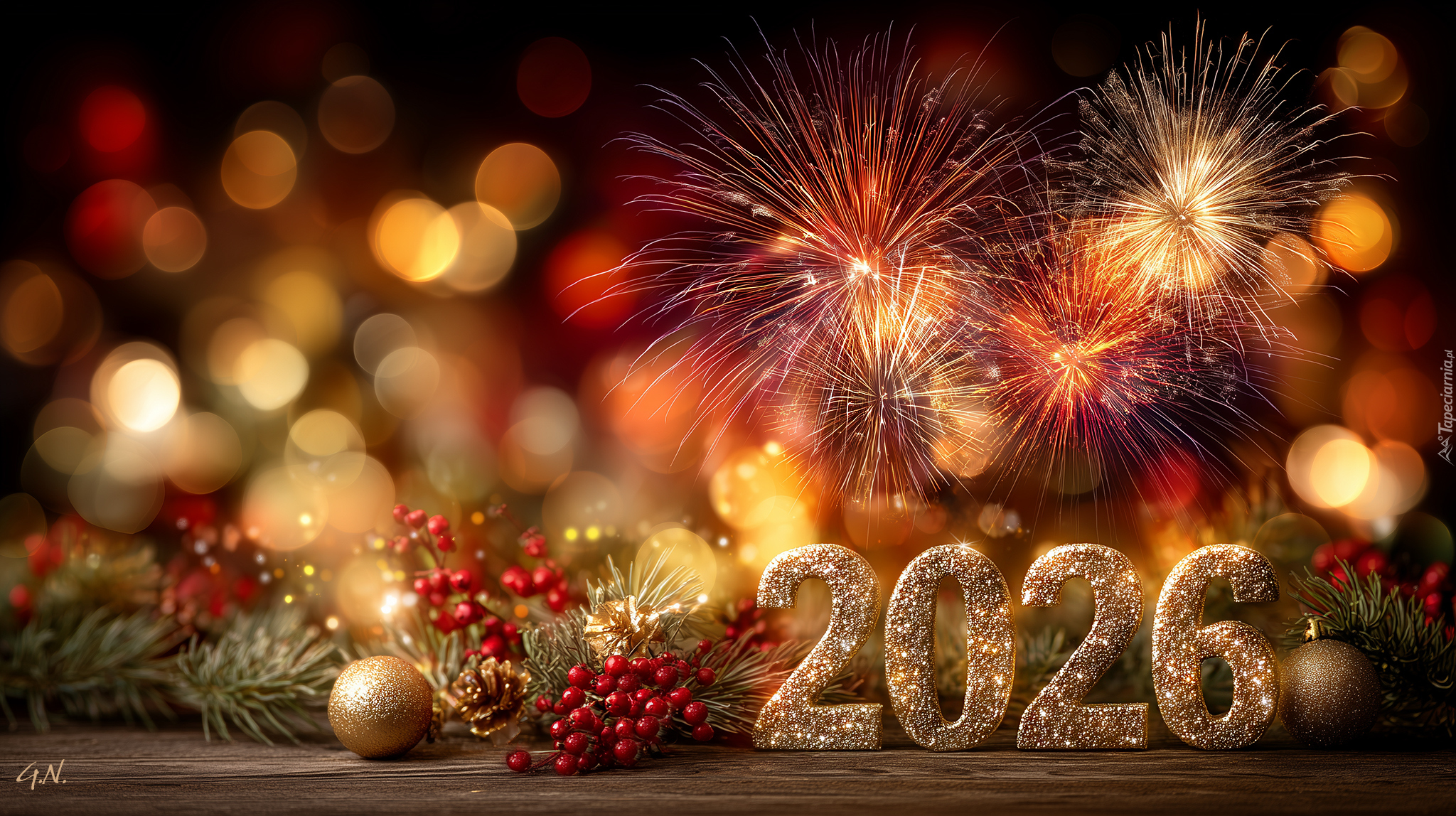 Edytor tapety: Kompozycja noworoczna z fajerwerkami i datą 2026
