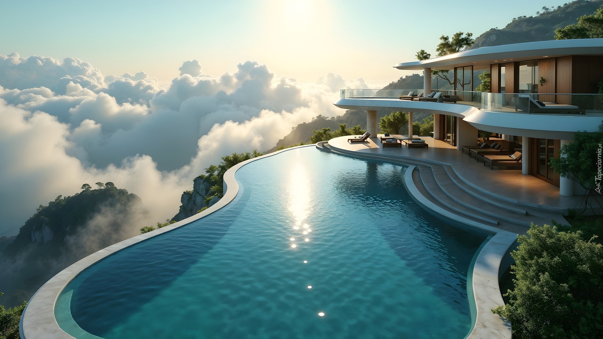Edytor tapety: Dom z basenem z widokiem na chmury