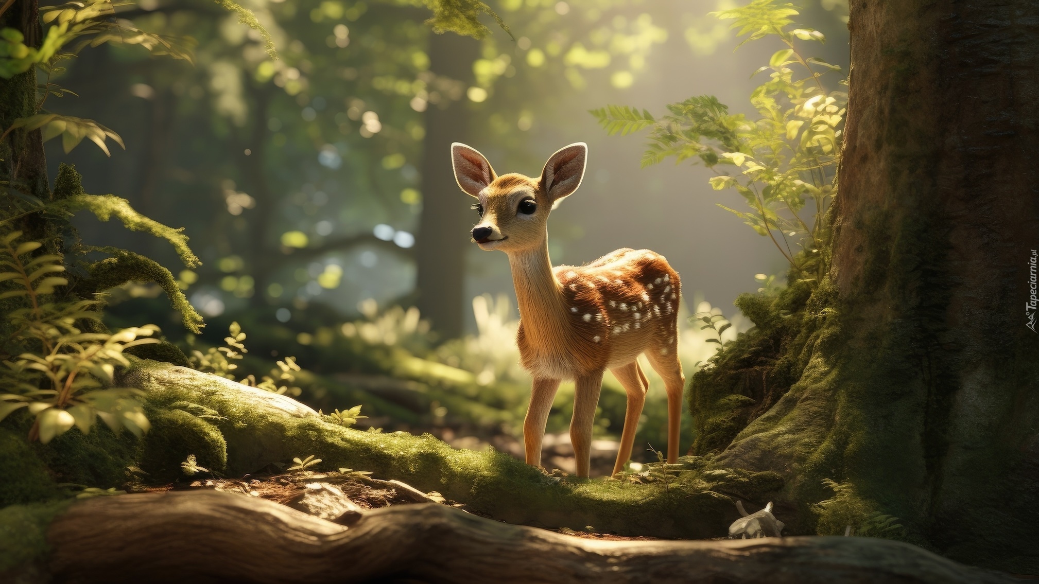 Edytor tapety: Sarenka pod drzewem w słonecznym lesie