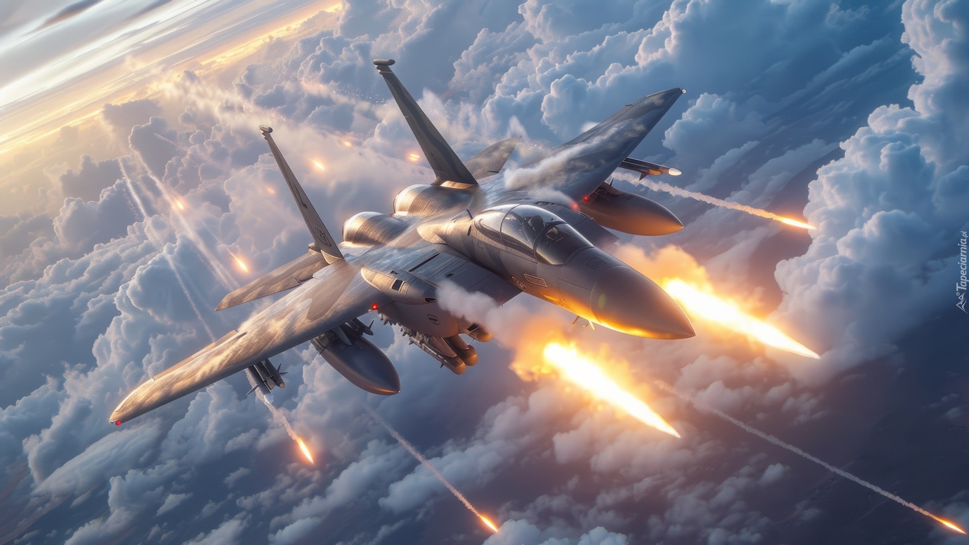 Edytor tapety: Myśliwiec podczas walki nad chmurami