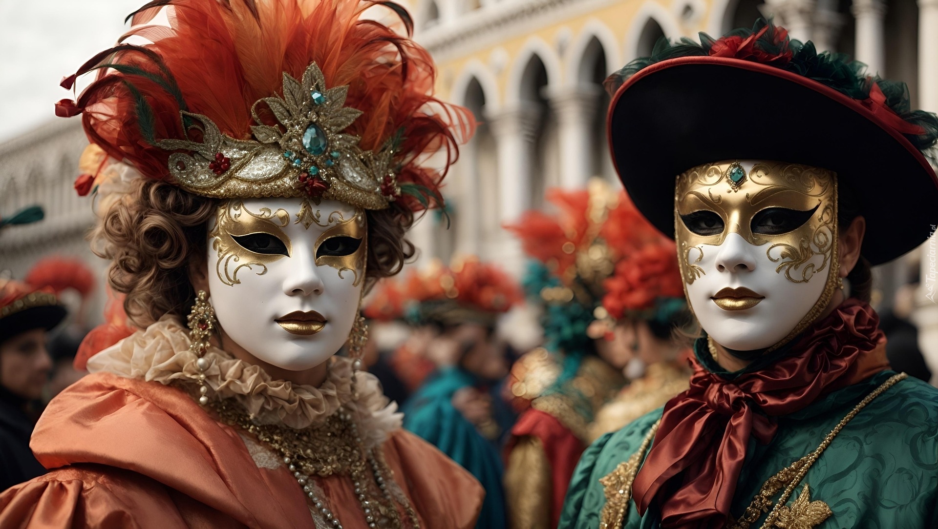 Edytor tapety: Ludzie w strojach i maskach karnawałowych