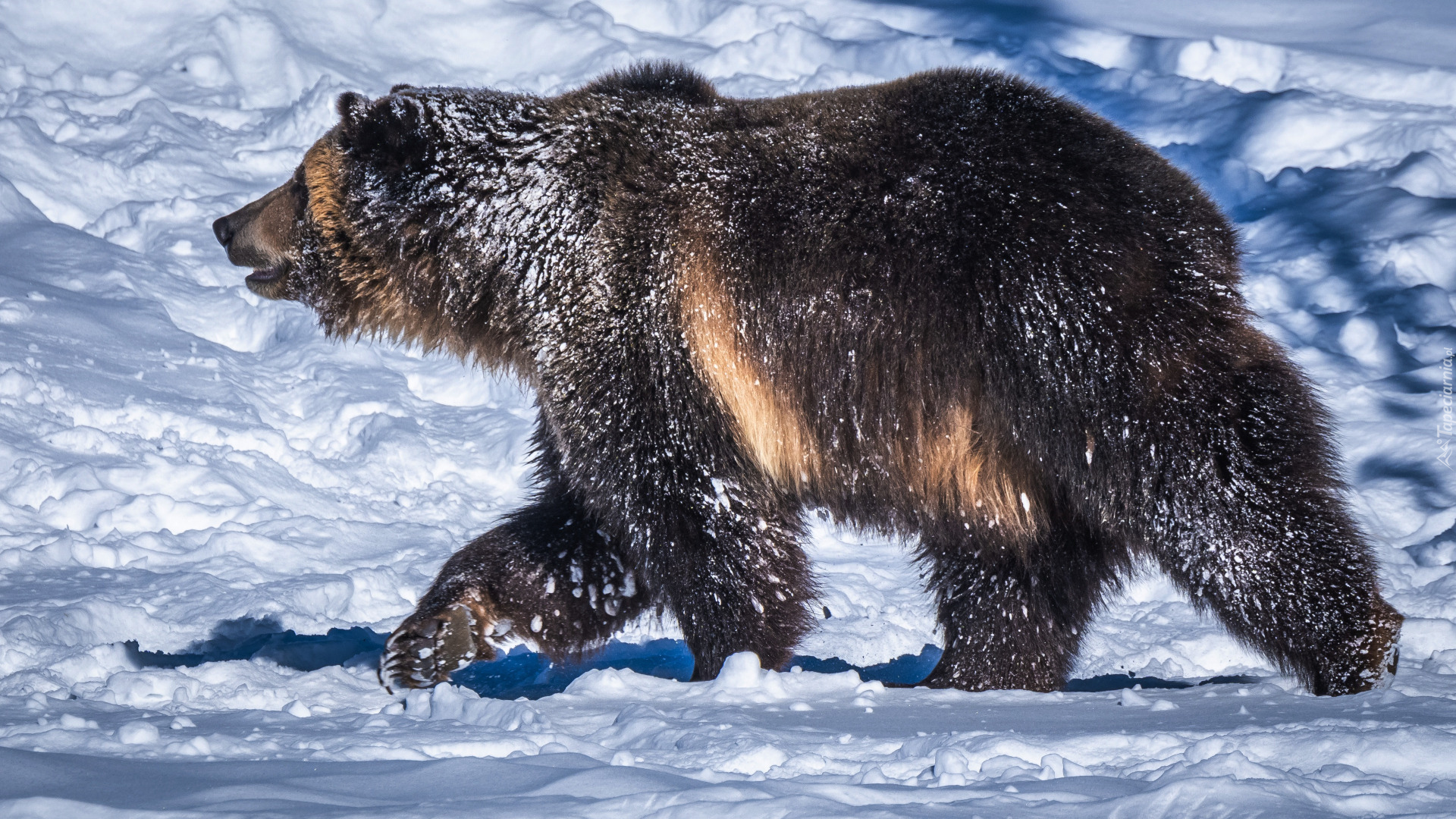 Edytor tapety: Niedźwiedź brunatny idący po śniegu
