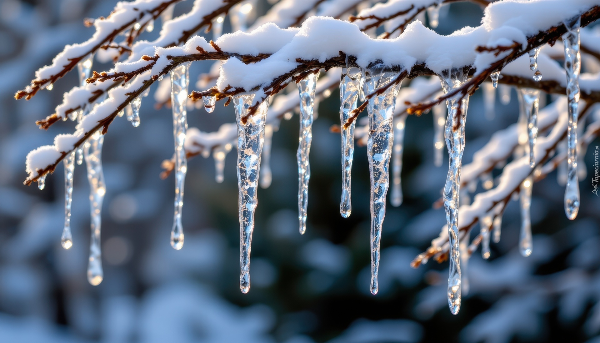 Edytor tapety: Sople na ośnieżonych gałązkach