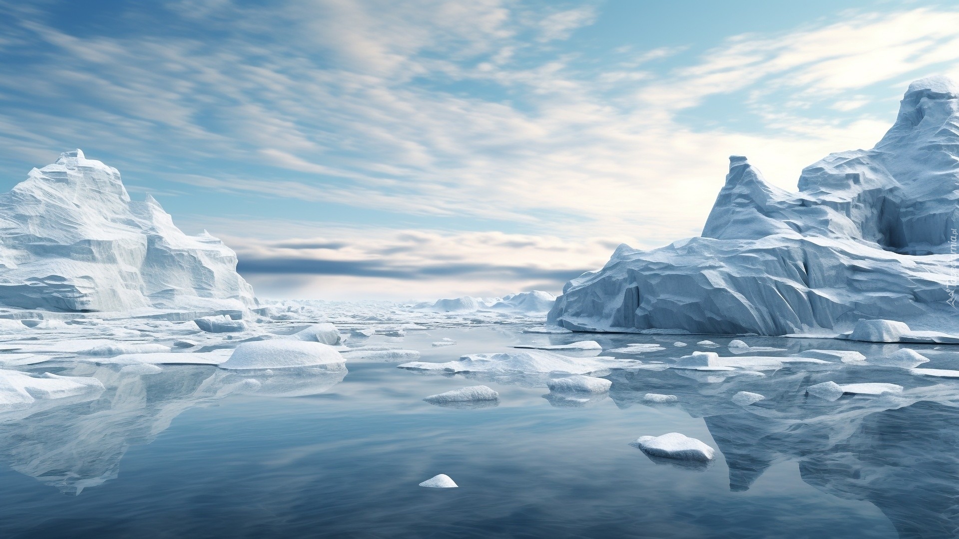 Edytor tapety: Kry i góry lodowe na morzu