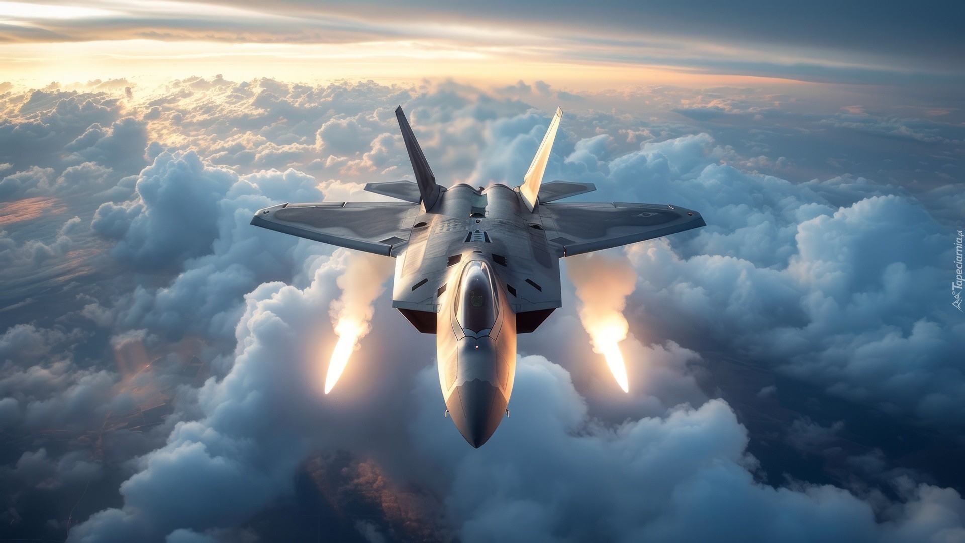 Edytor tapety: Myśliwiec ponad chmurami