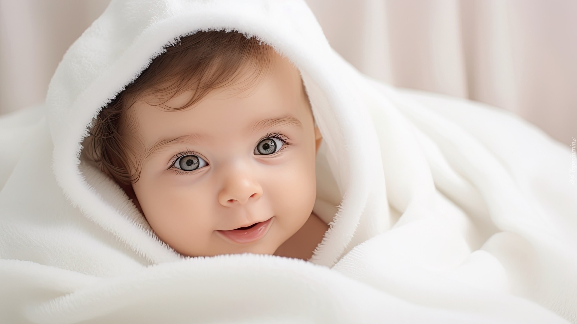 Edytor tapety: Głowa dziecka w białym kocyku