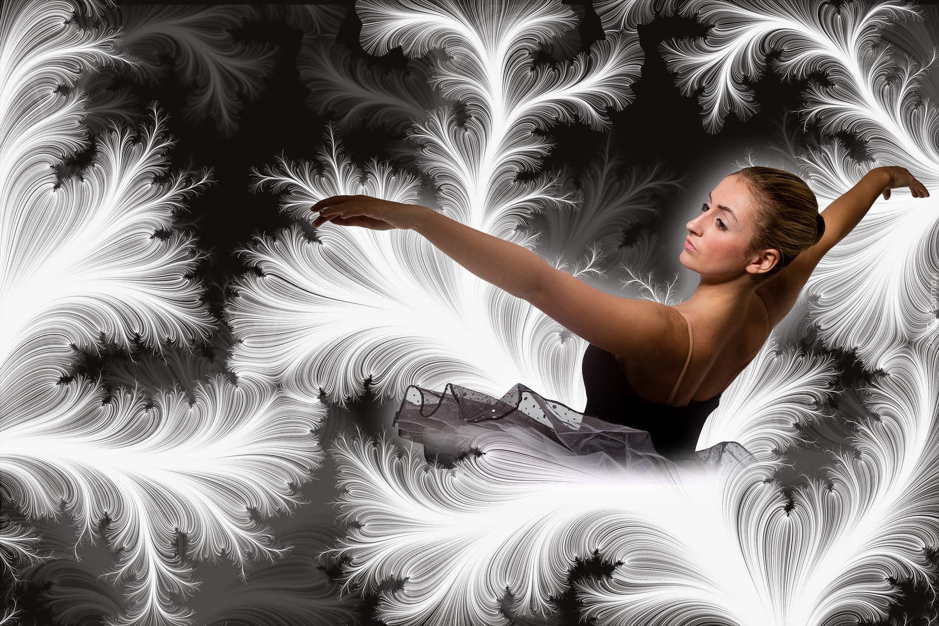 Edytor tapety: Tańcząca baletnica na biało-czarnym tle