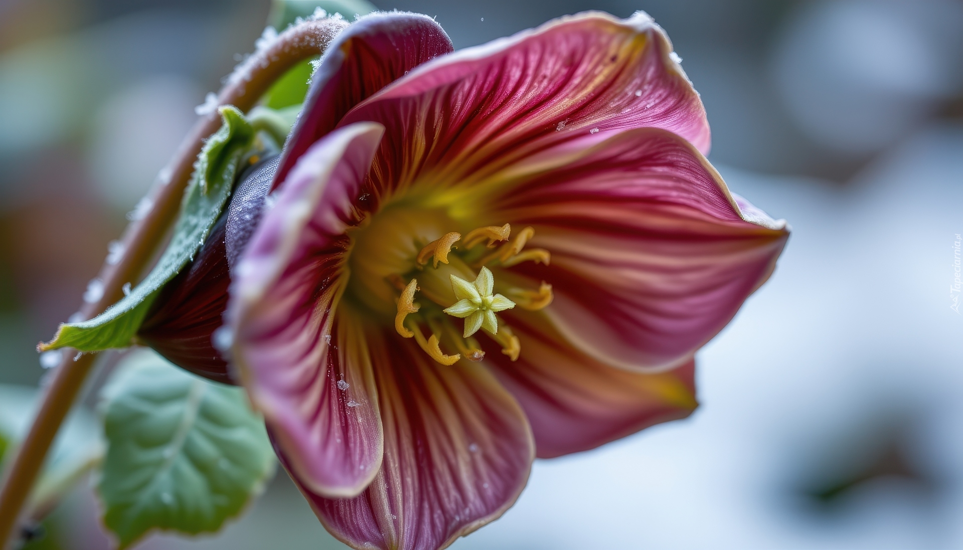 Edytor tapety: Ośnieżony kwiat rozwiniętego ciemiernika