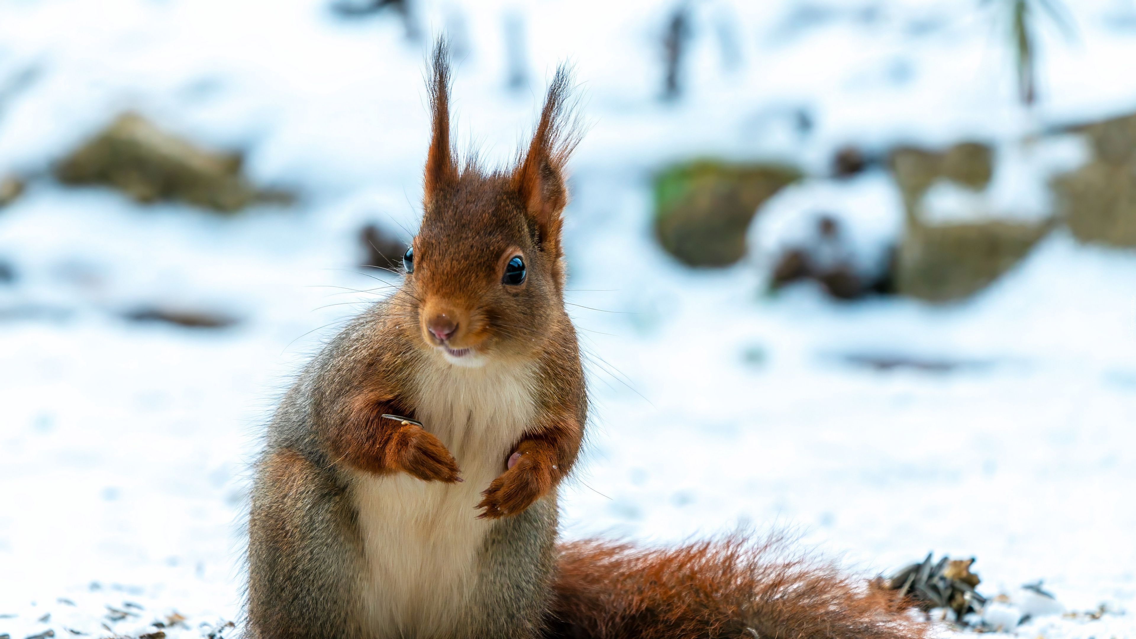 Edytor tapety: Ruda wiewiórka na śniegu