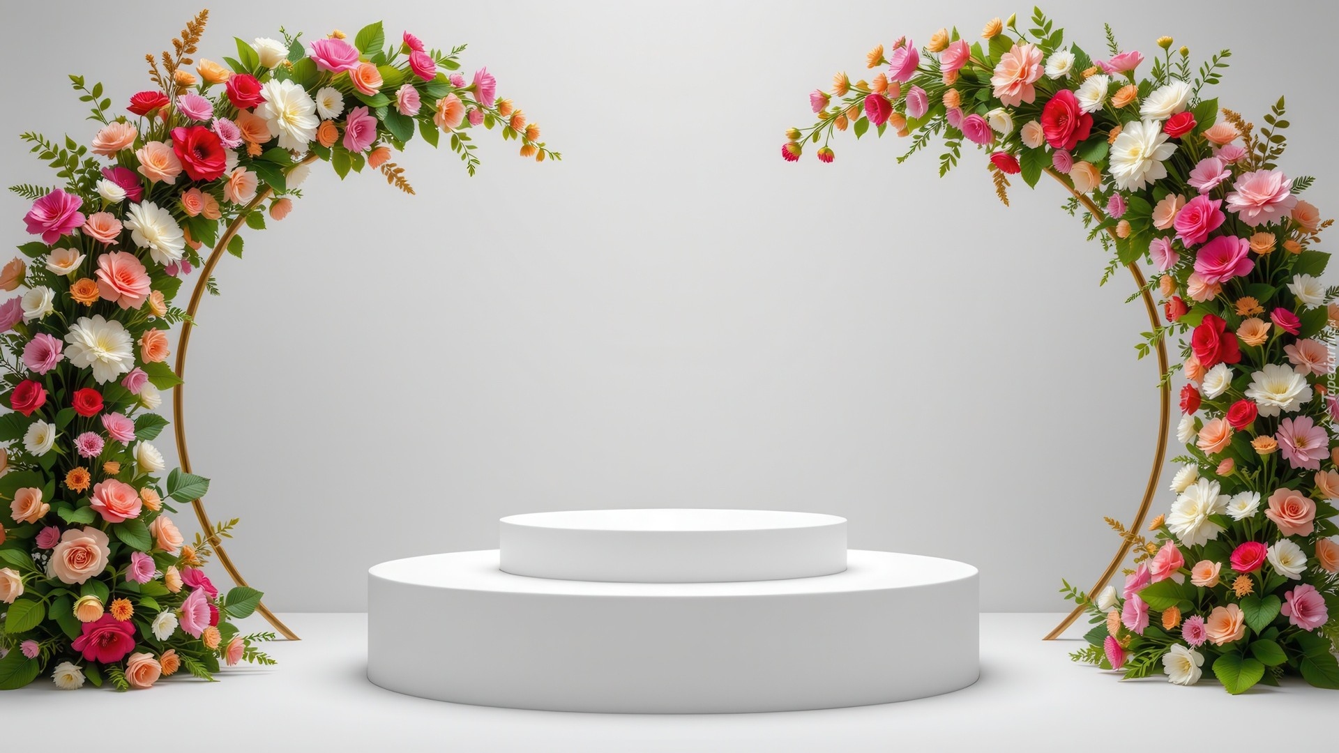 Edytor tapety: Kolorowe kwiaty na łukach przy podium