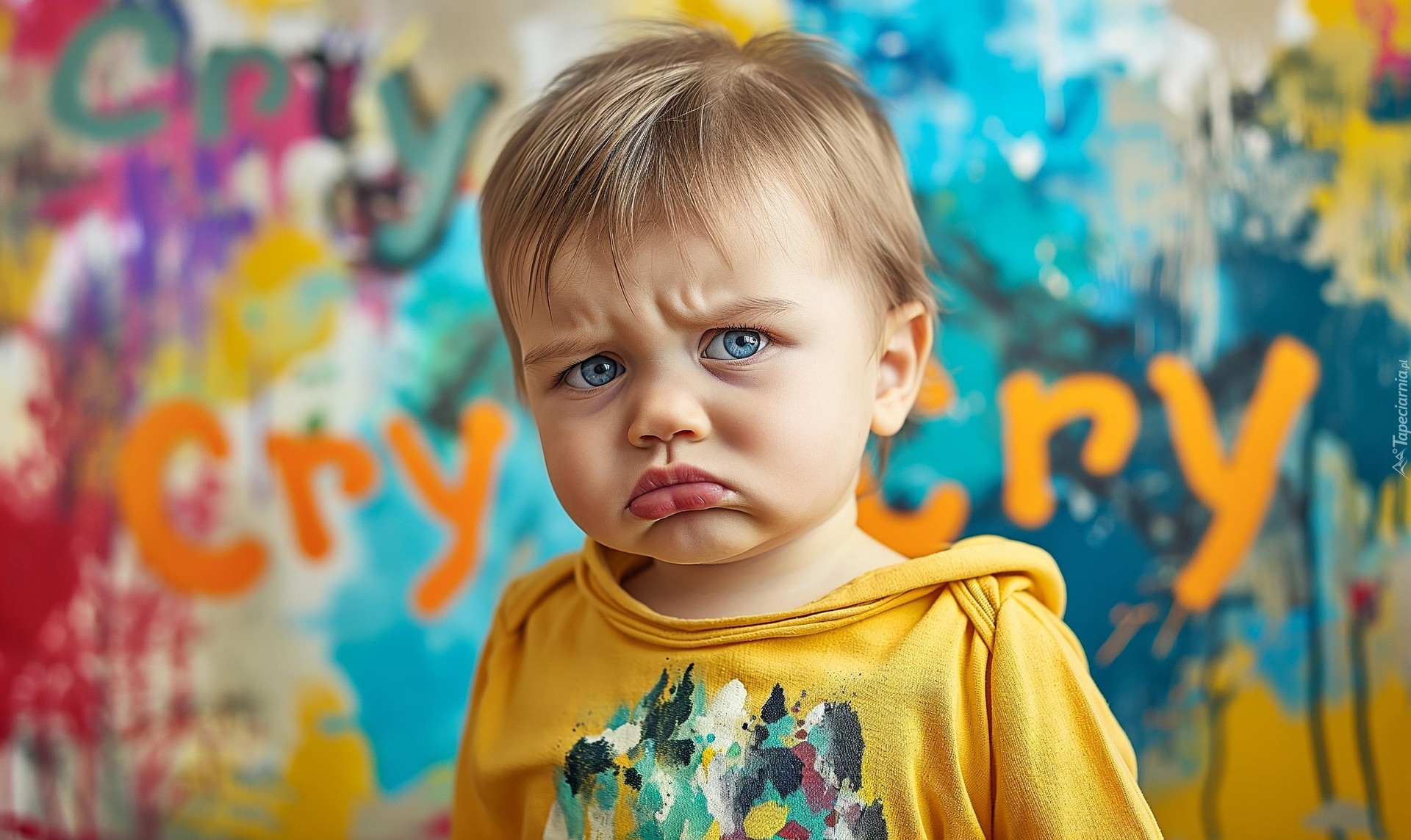 Edytor tapety: Smutny niebieskooki chłopczyk