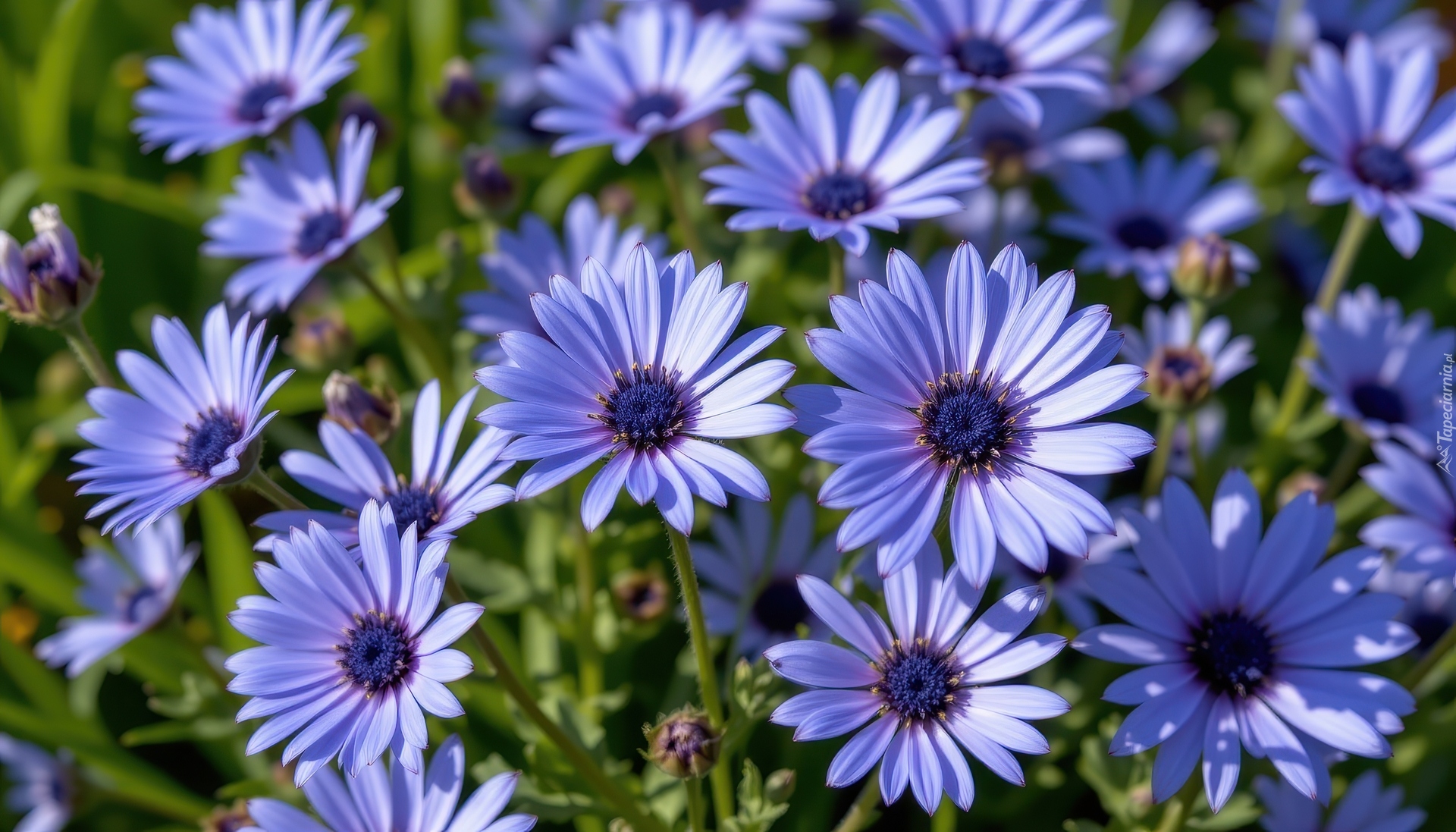 Edytor tapety: Niebieskie stokrotki afrykańskie w zbliżeniu