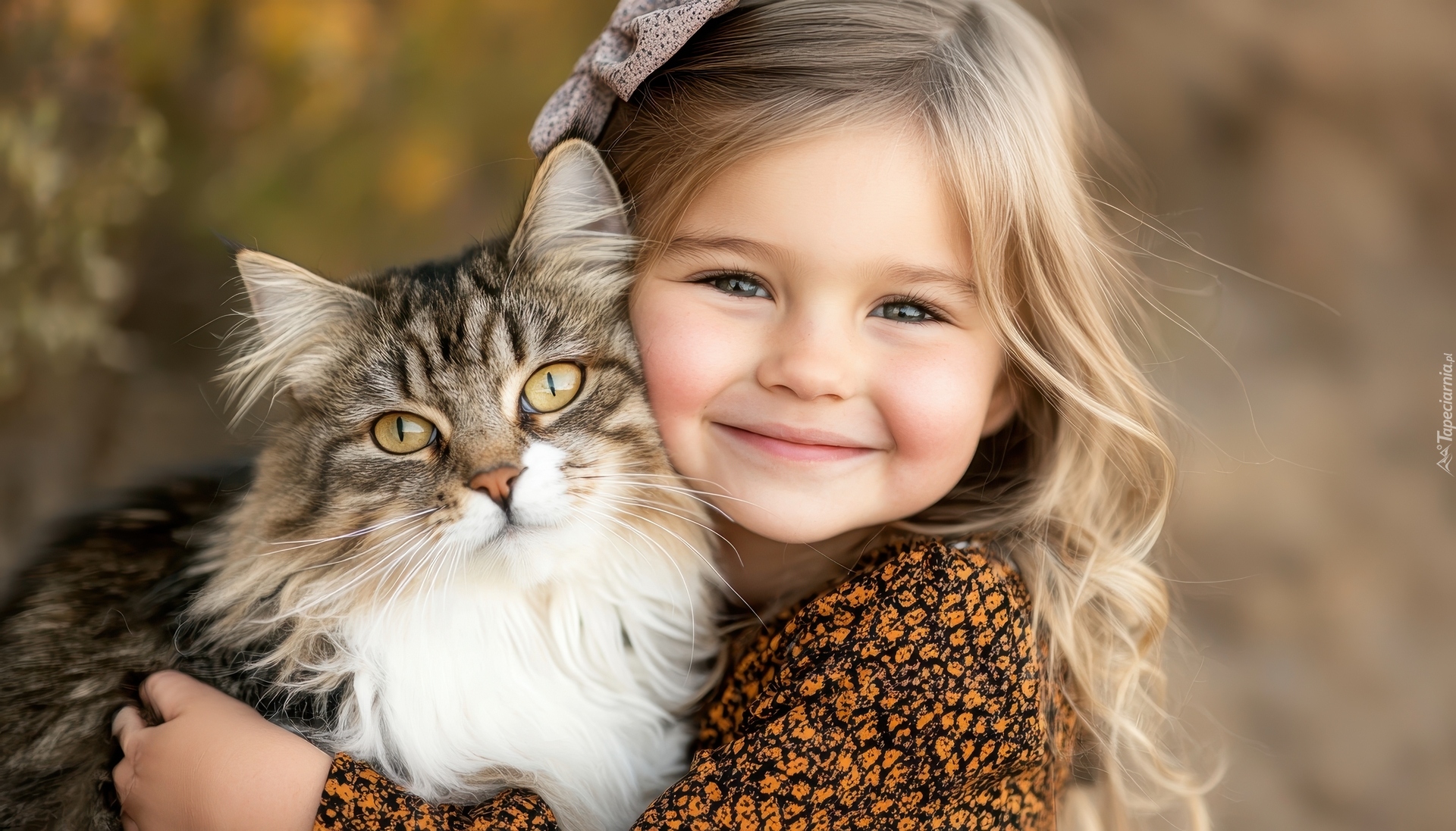 Edytor tapety: Uśmiechnięta dziewczynka z kotem