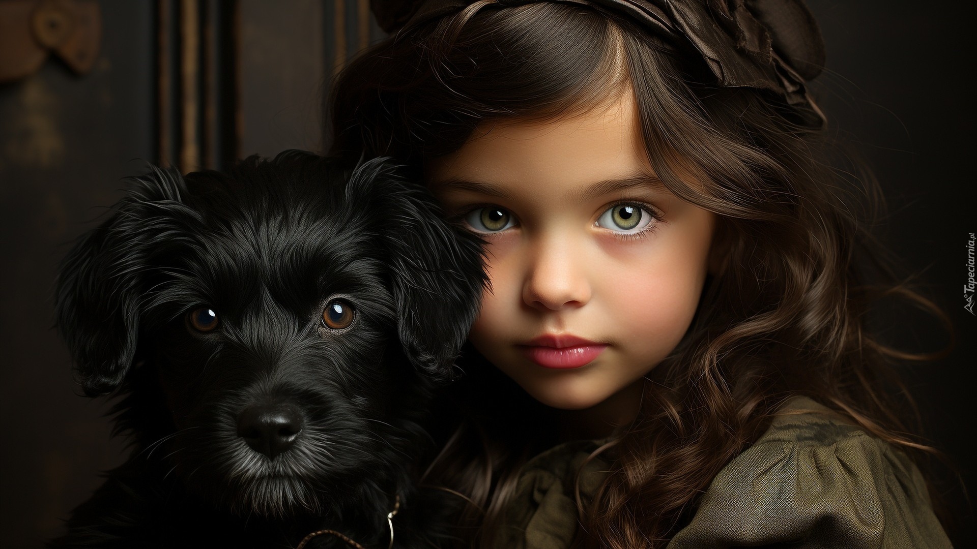 Edytor tapety: Dziewczynka z długimi włosami i czarnym psem