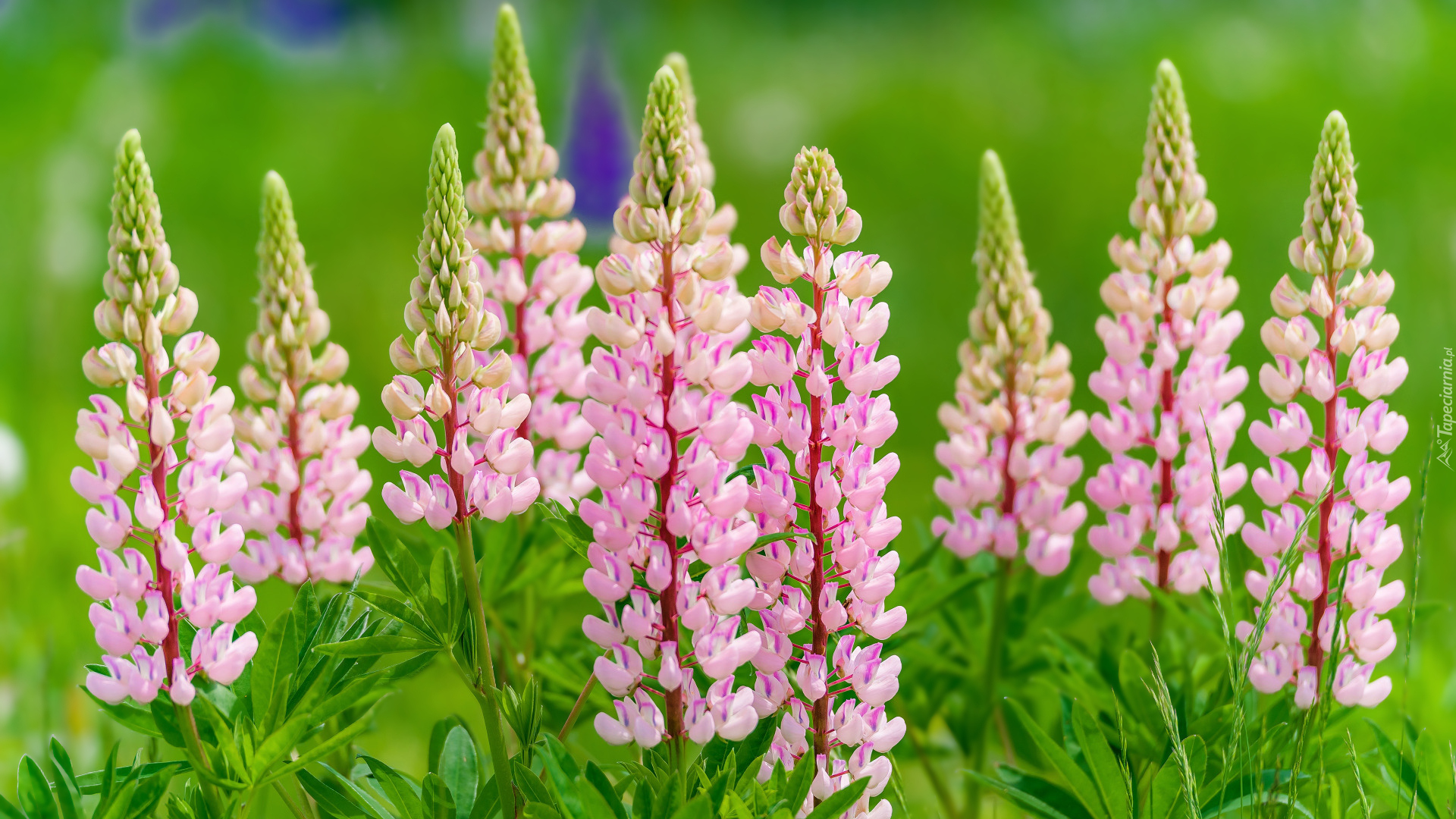 Edytor tapety: Rozkwitnięty jasnoróżowy łubin