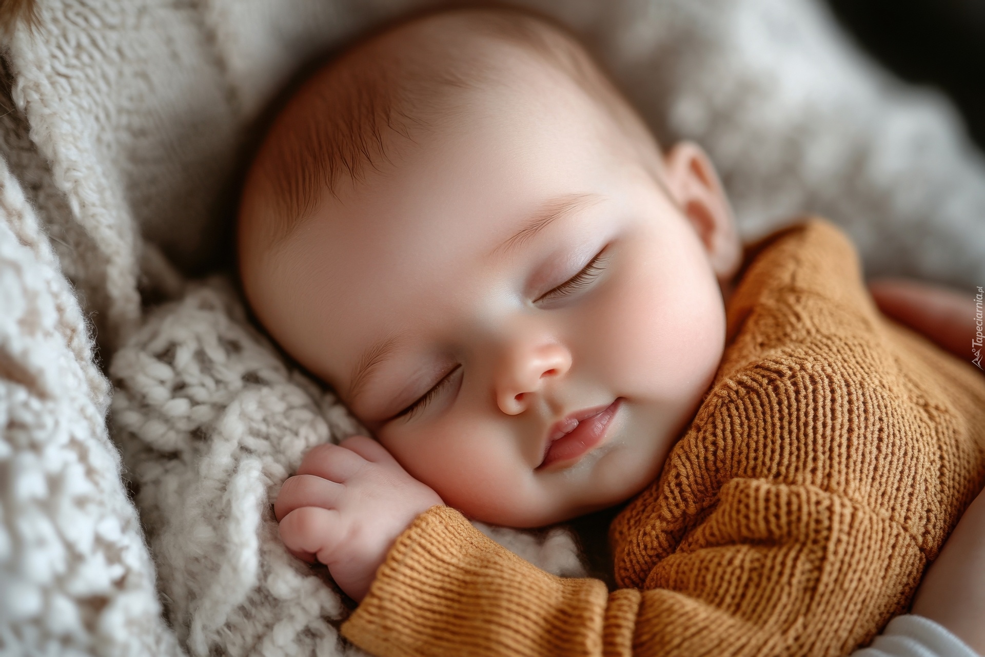 Edytor tapety: Śpiące niemowlę w sweterku
