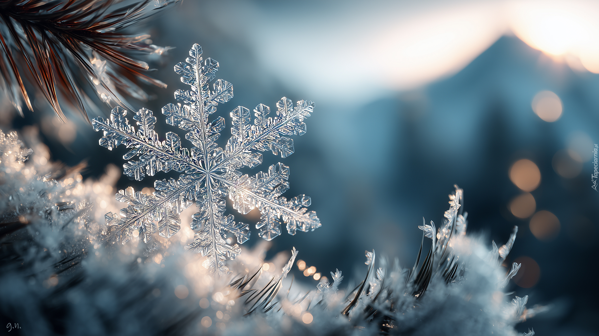 Edytor tapety: Śnieżynka na gałązce sosny