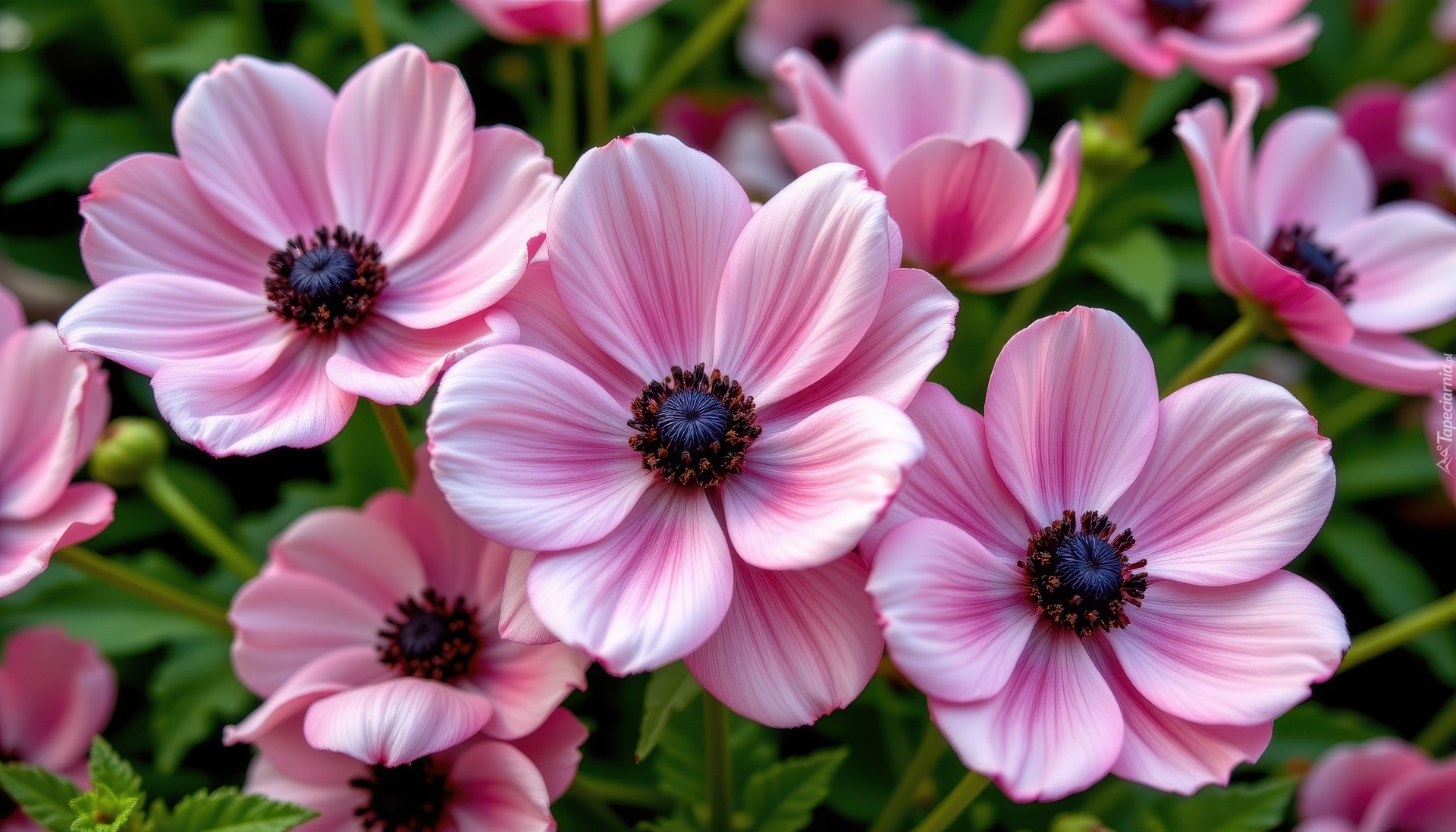 Edytor tapety: Rozkwitnięte różowe zawilce w zbliżeniu