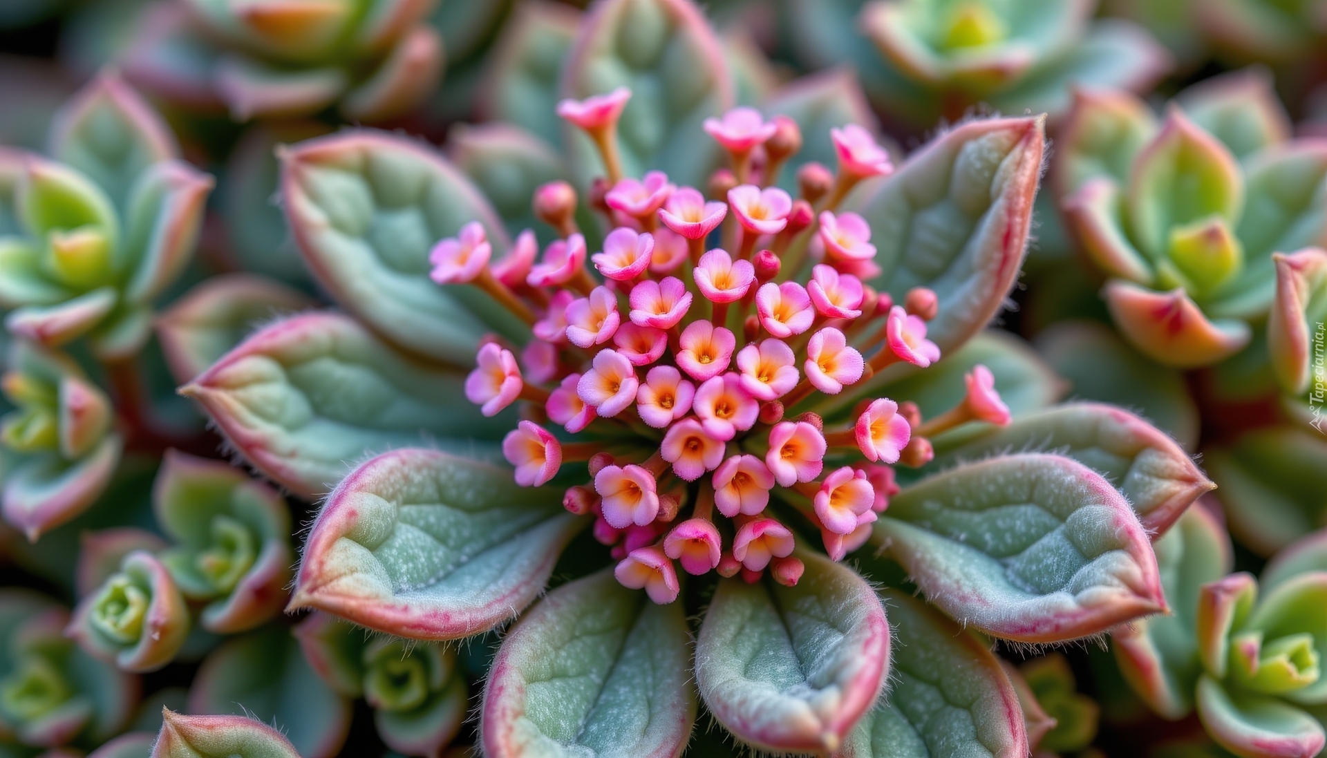 Edytor tapety: Drobne różowe kwiatki z mięsistymi listkami