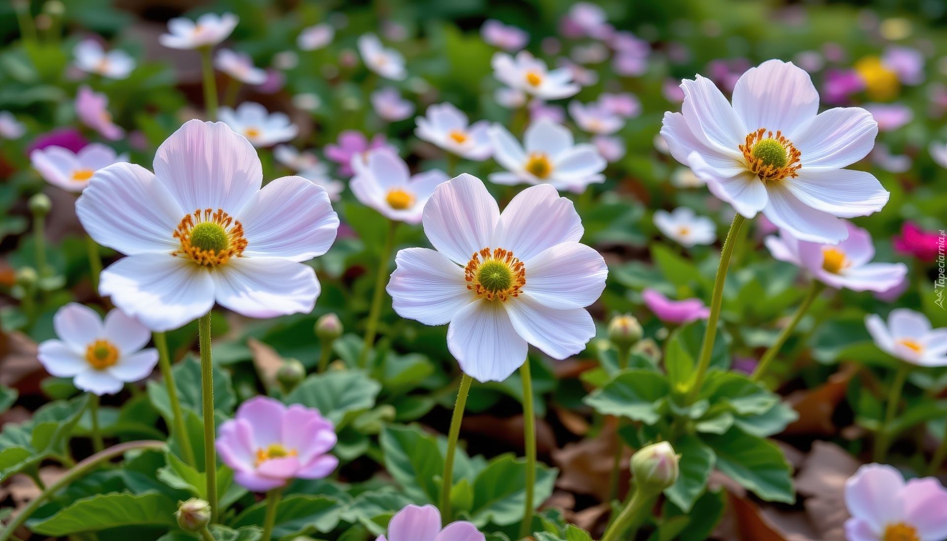 Edytor tapety: Biało-różowe zawilce w zbliżeniu
