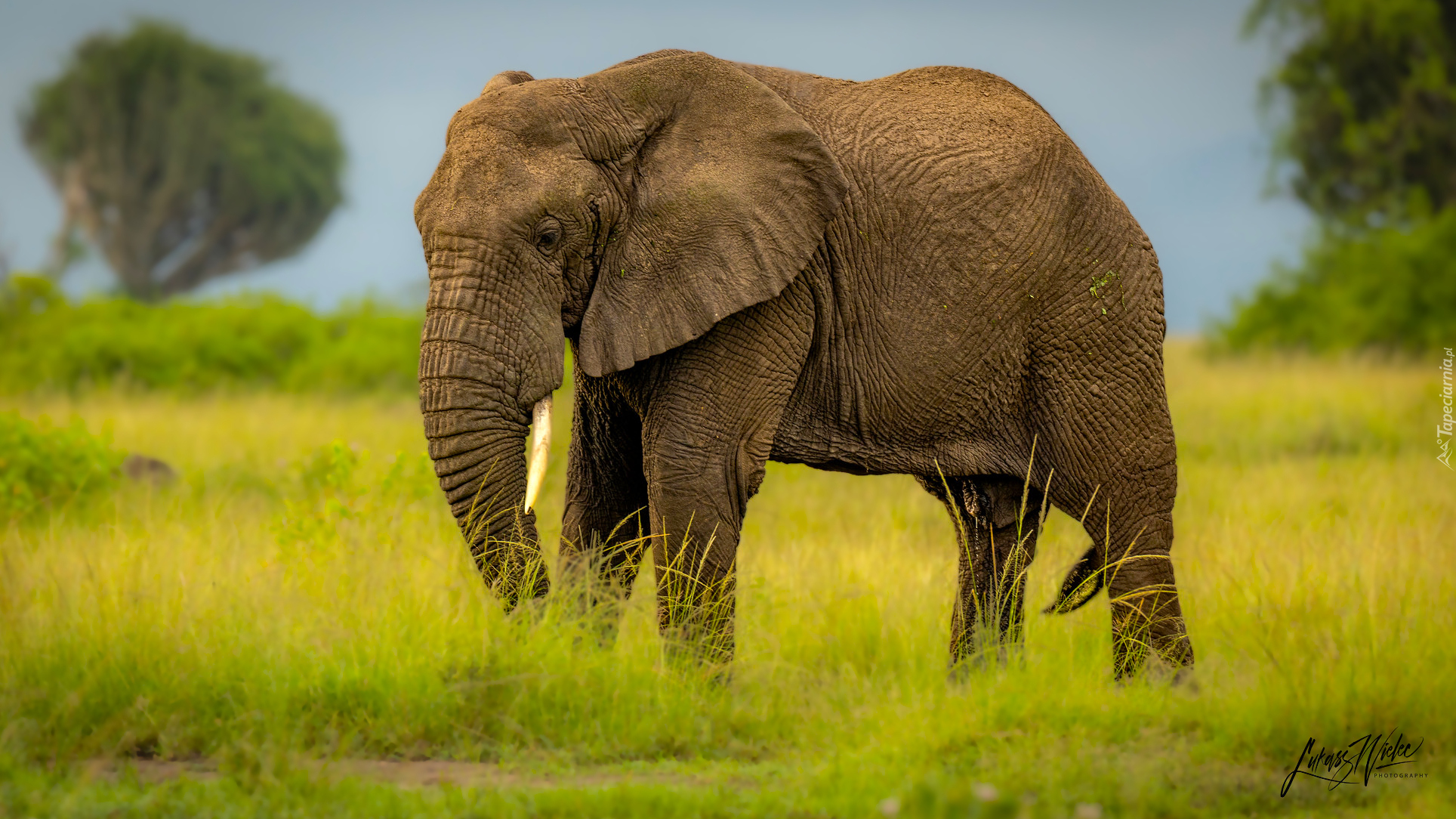 Edytor tapety: Słoń na zielonej trawie