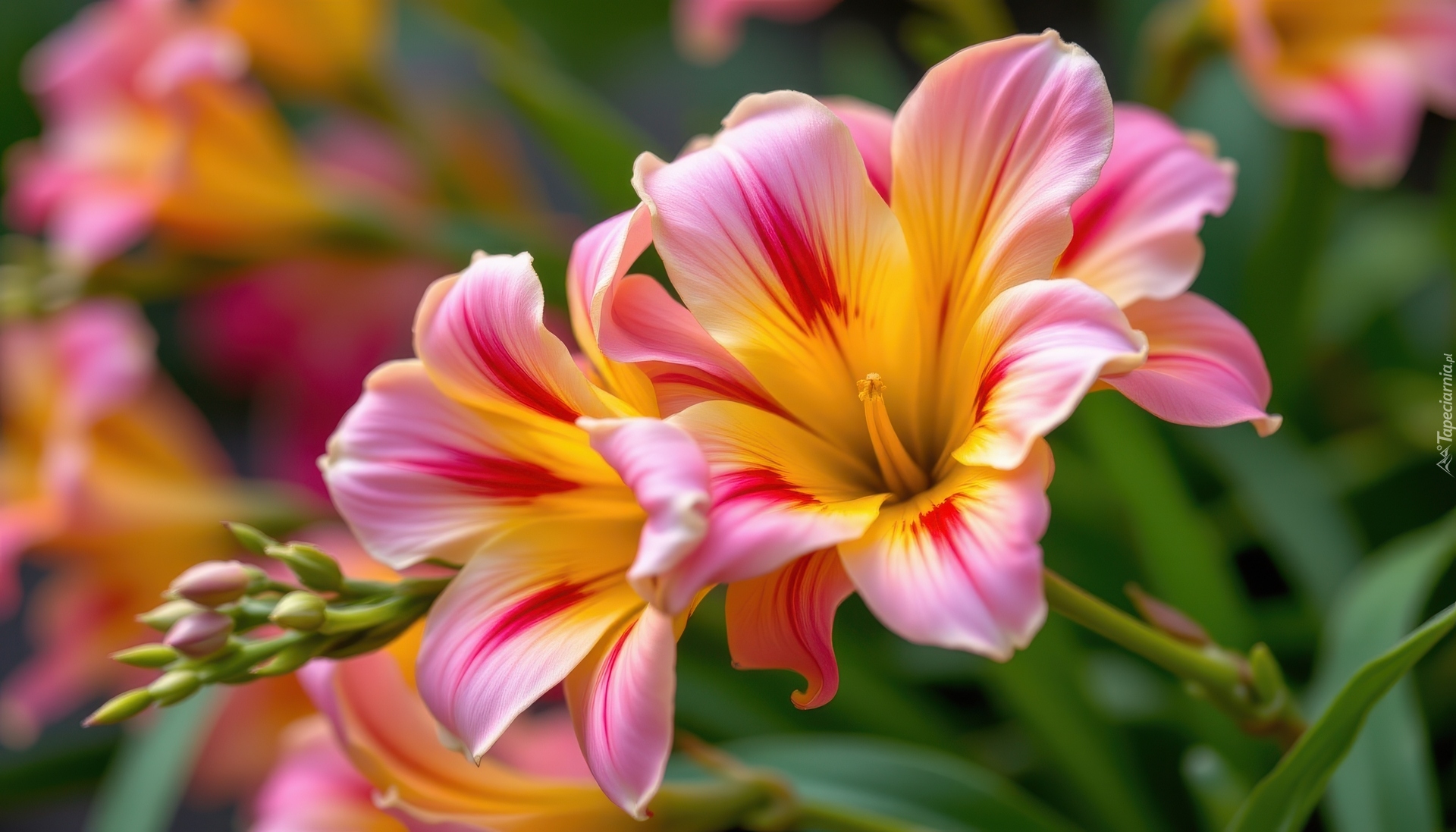 Edytor tapety: Rozświetlona różowo-żółta frezja w zbliżeniu
