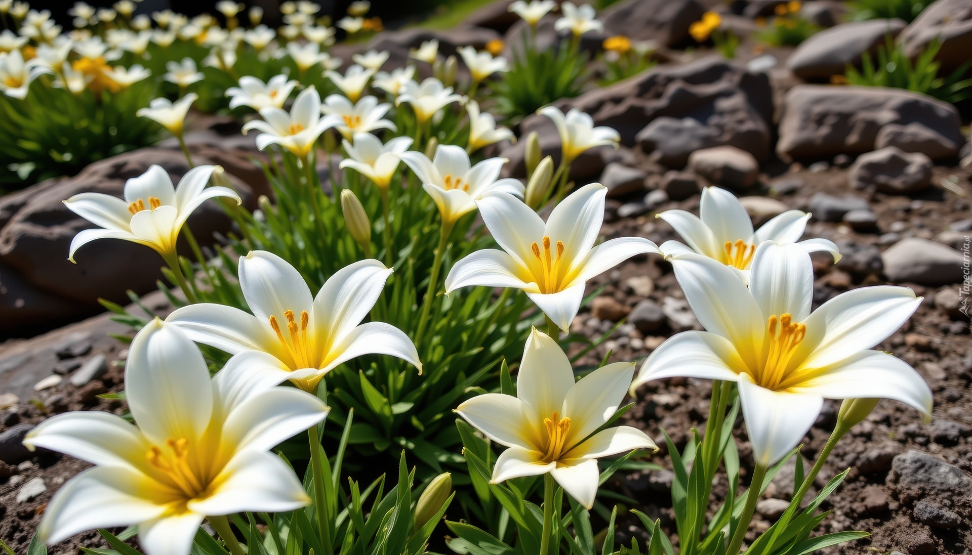 Edytor tapety: Rozkwitnięte białe lilie w blasku słońca