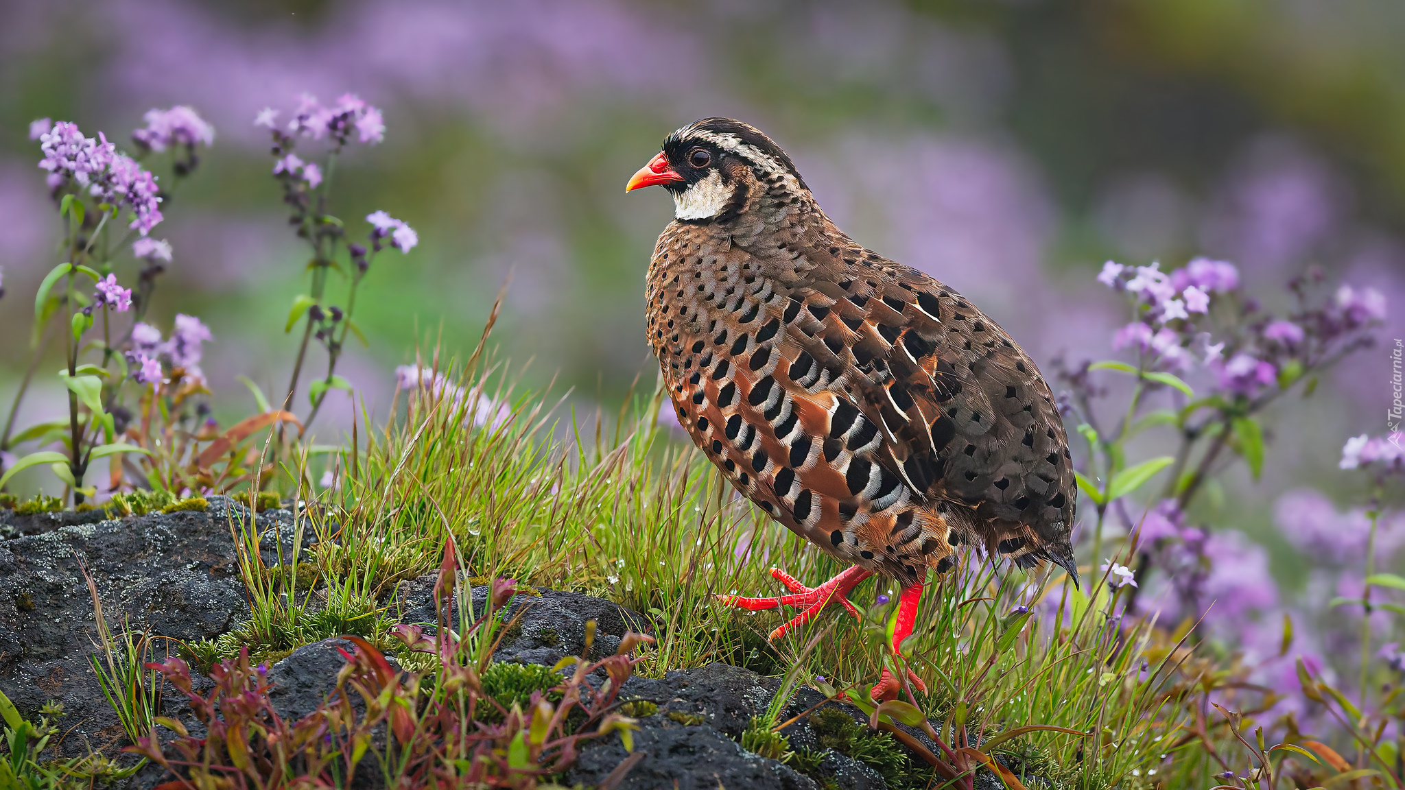 Edytor tapety: Przepióreczka czerwonodzioba na trawie