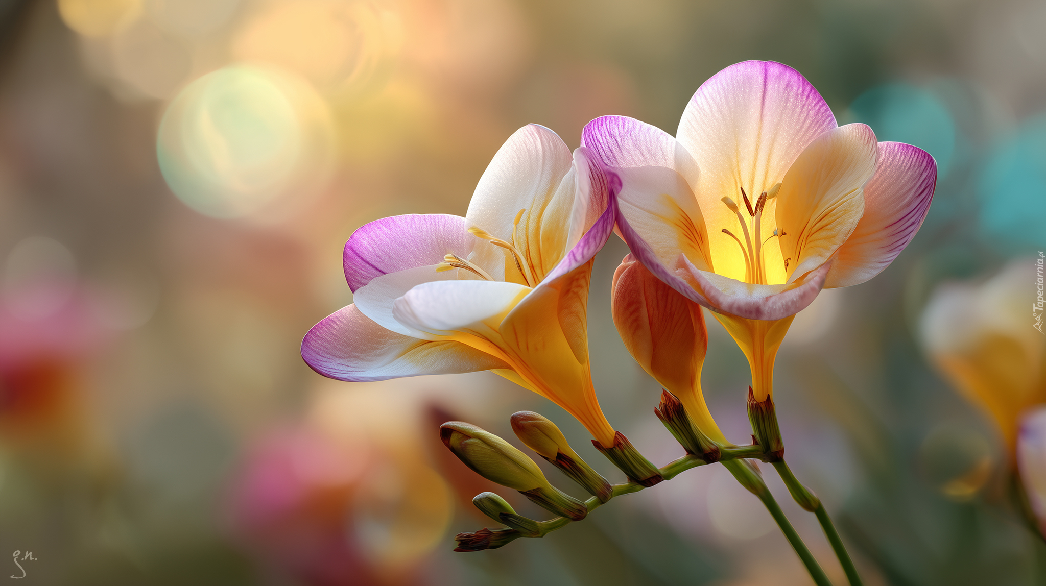 Edytor tapety: Rozświetlone frezje w zbliżeniu