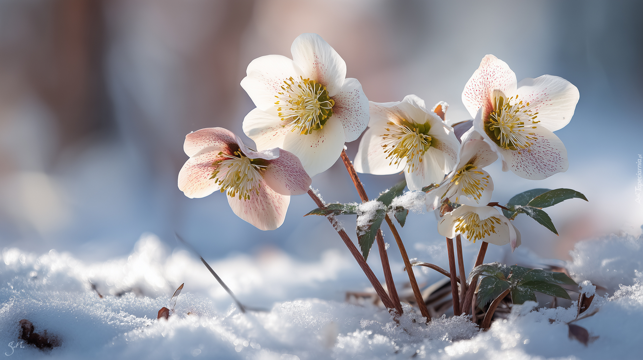 Edytor tapety: Jasnoróżowe ciemierniki w śniegu