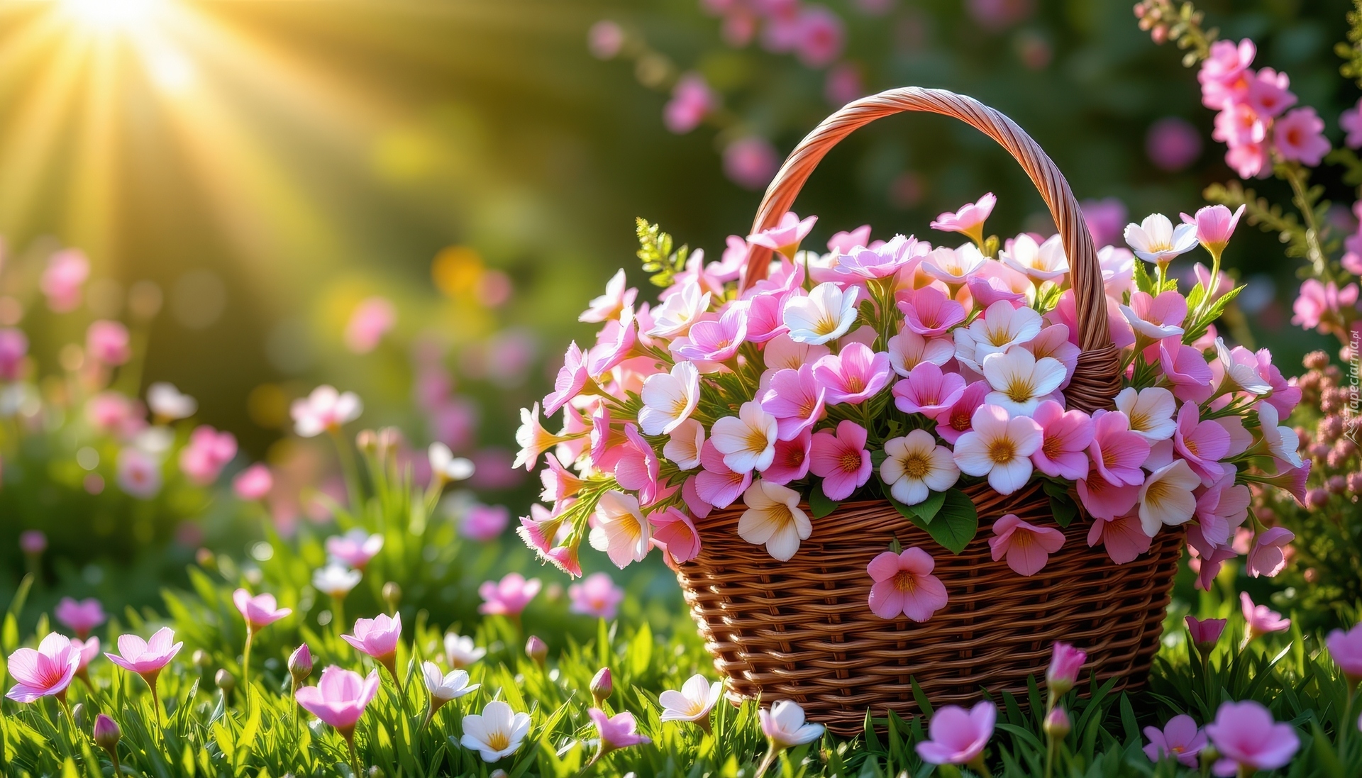 Edytor tapety: Polne kwiaty w wiklinowym koszyku na łące