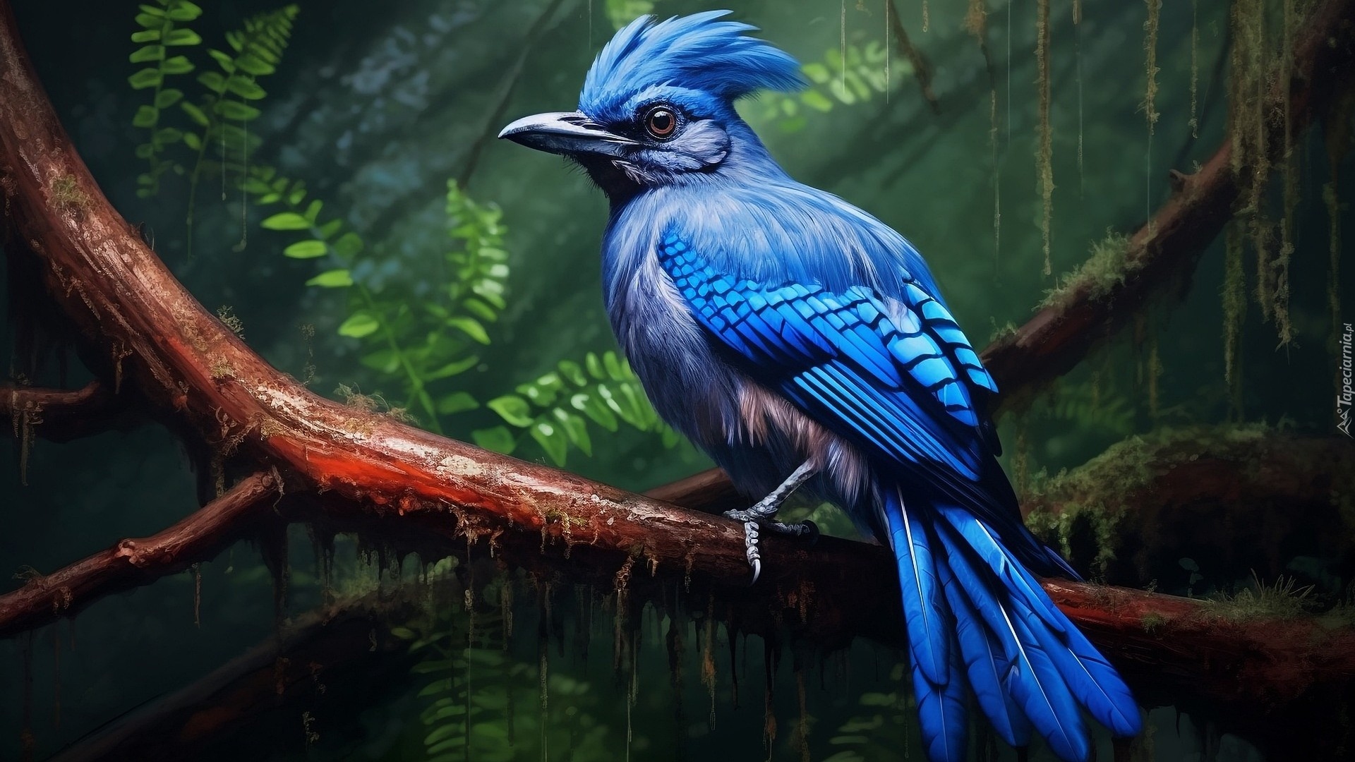 Edytor tapety: Niebieski ptak na konarze