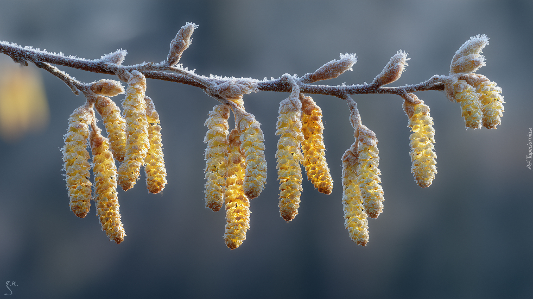 Edytor tapety: Kwiatostany brzozy na gałązce