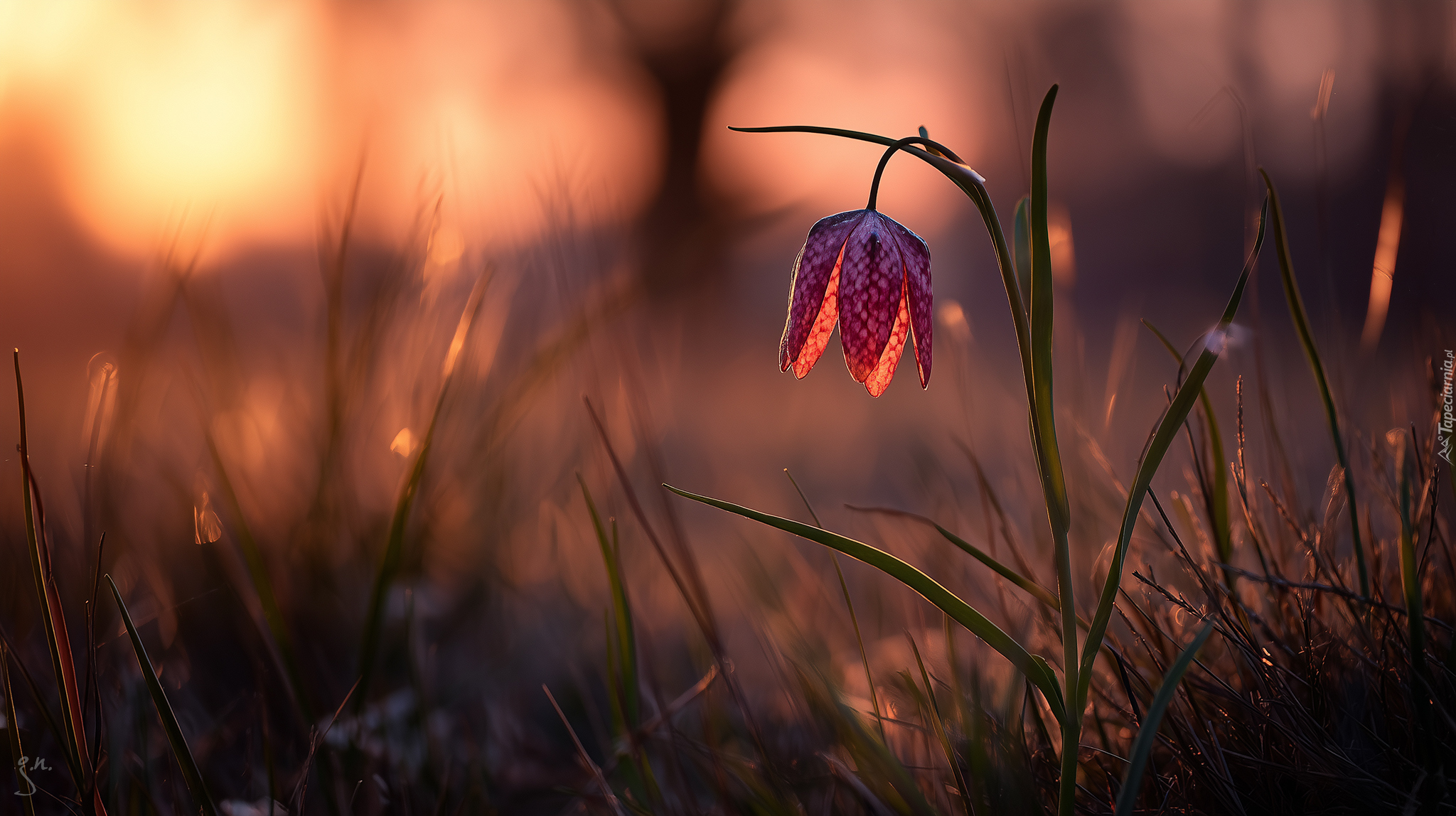 Edytor tapety: Szachownica kostkowata rozświetlona zachodzącym słońcem