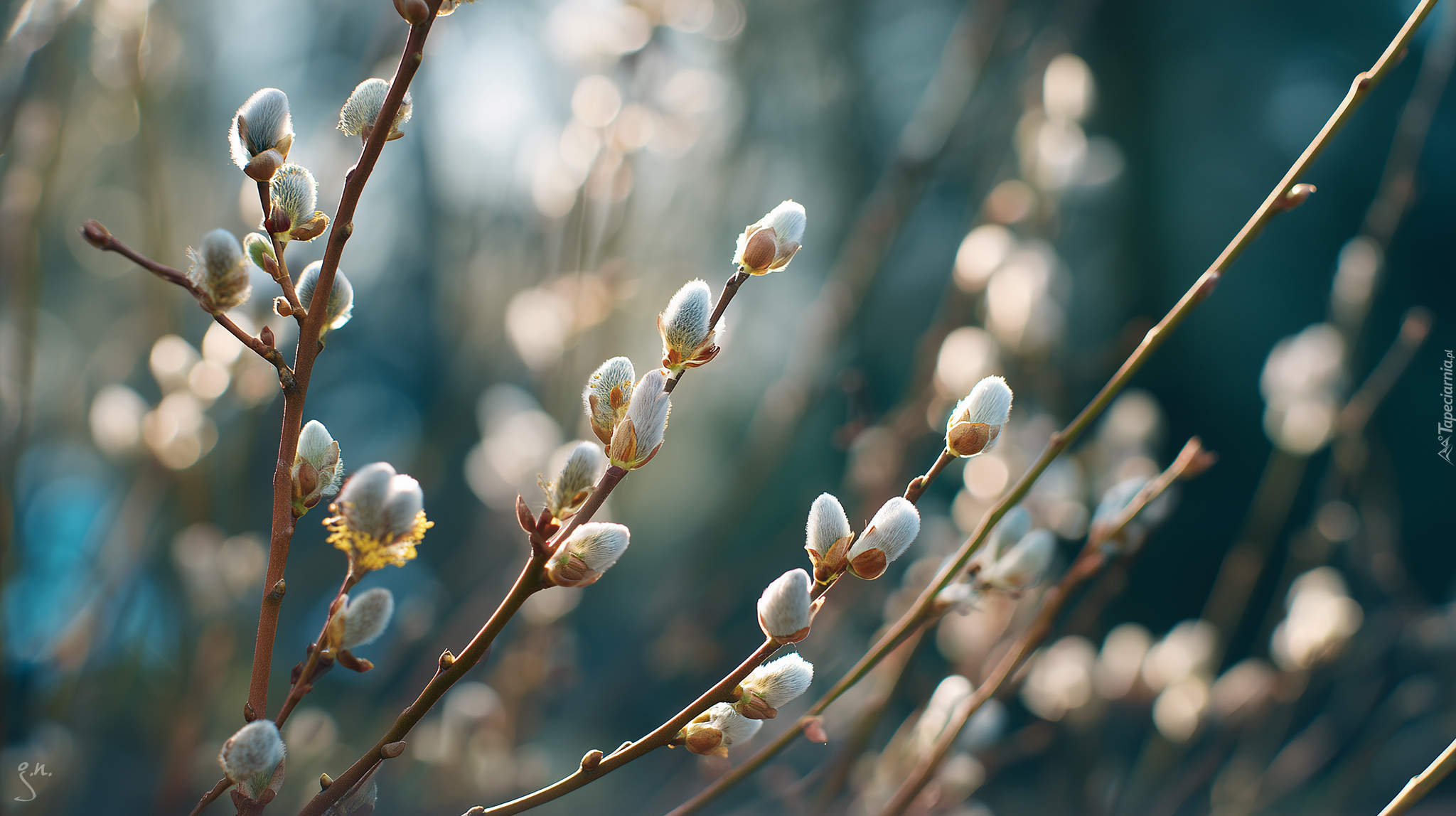 Edytor tapety: Bazie na gałązkach wierzby w grafice AI