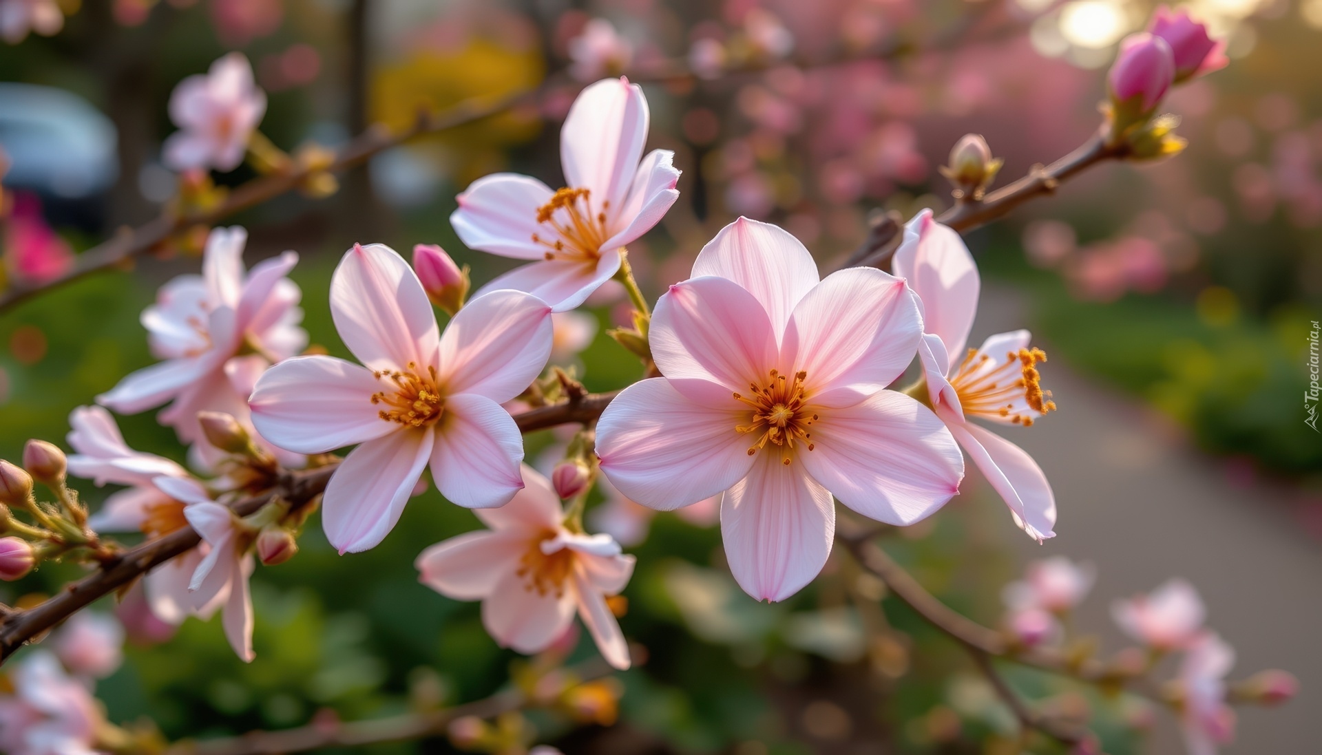 Edytor tapety: Pąki i różowe kwiaty na gałązce