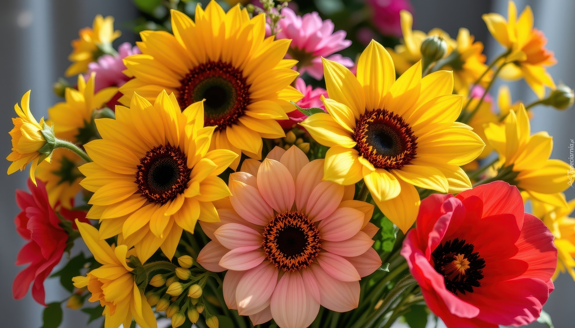 Edytor tapety: Bukiet z różnych kolorowych kwiatów