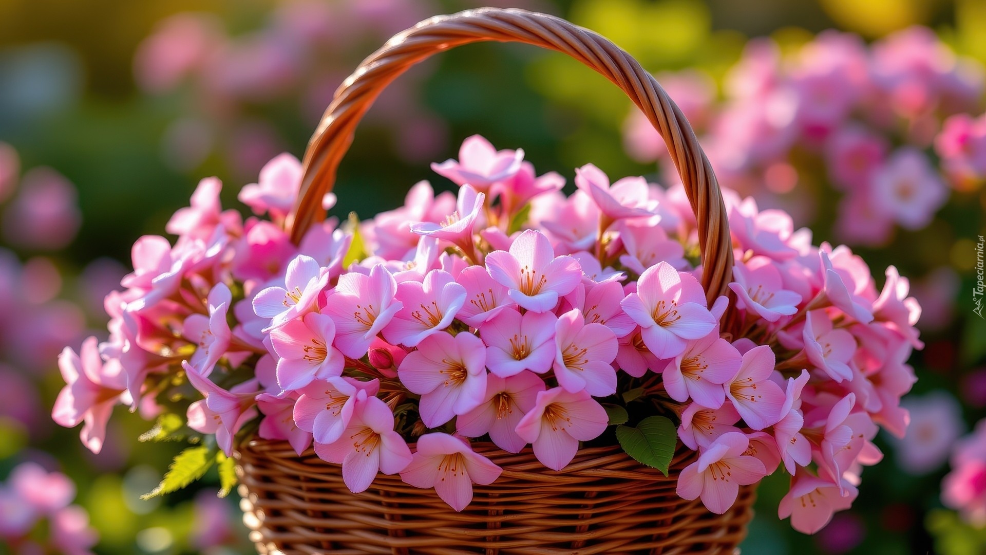 Edytor tapety: Drobne różowe kwiaty w koszyku