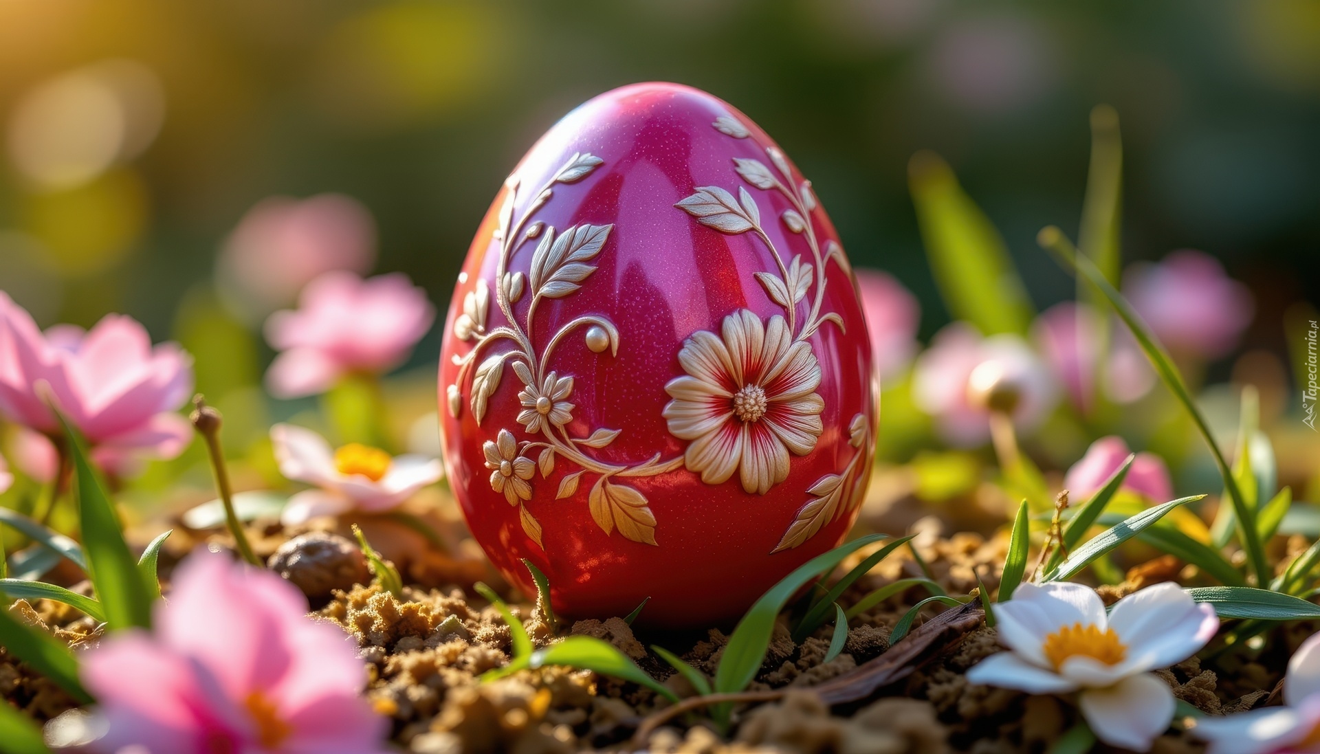 Edytor tapety: Czerwone jajko ozdobione motywem kwiatowym