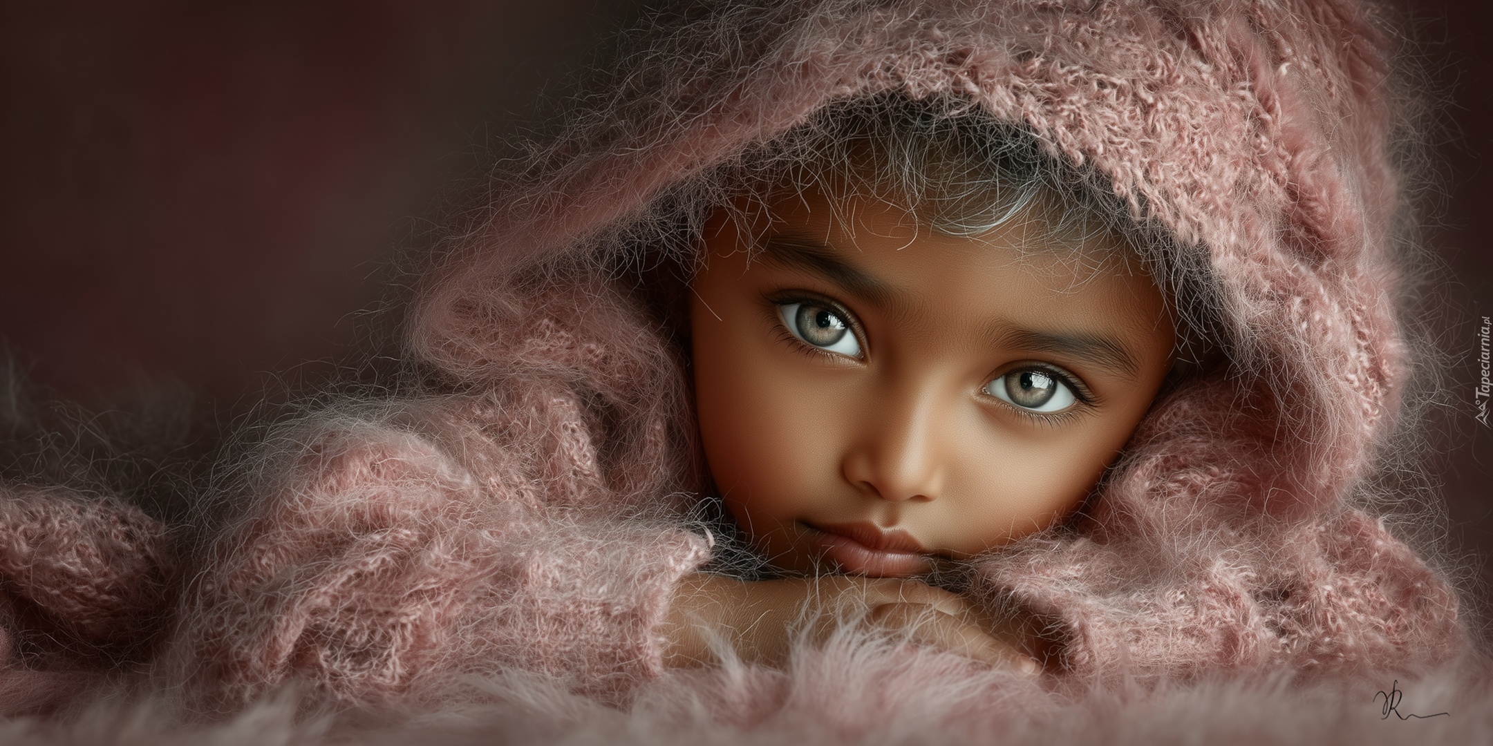 Edytor tapety: Ciemnoskóre dziecko w wełnianym swetrze z kapturem