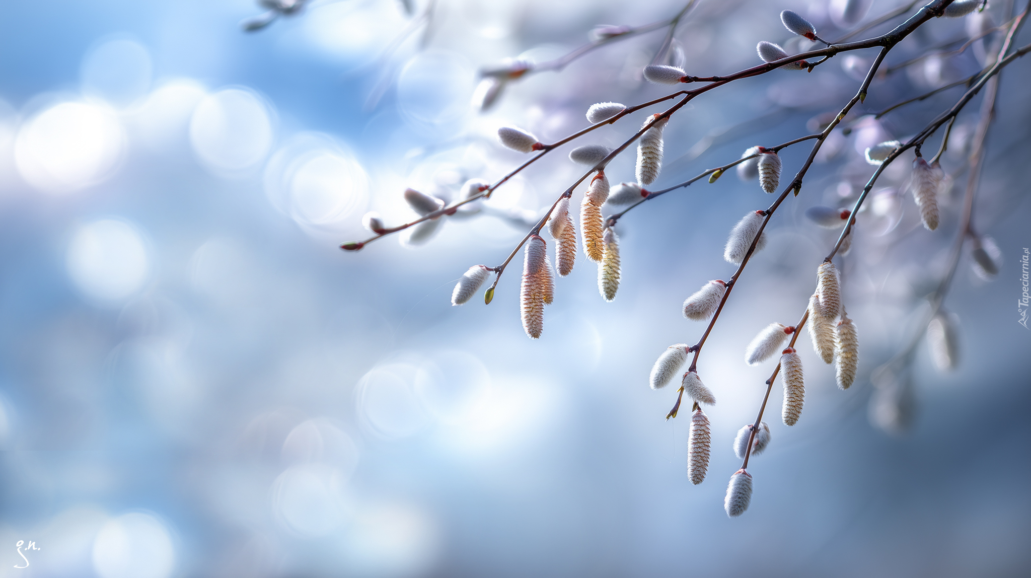 Edytor tapety: Gałązki z baziami na tle błękitnego nieba