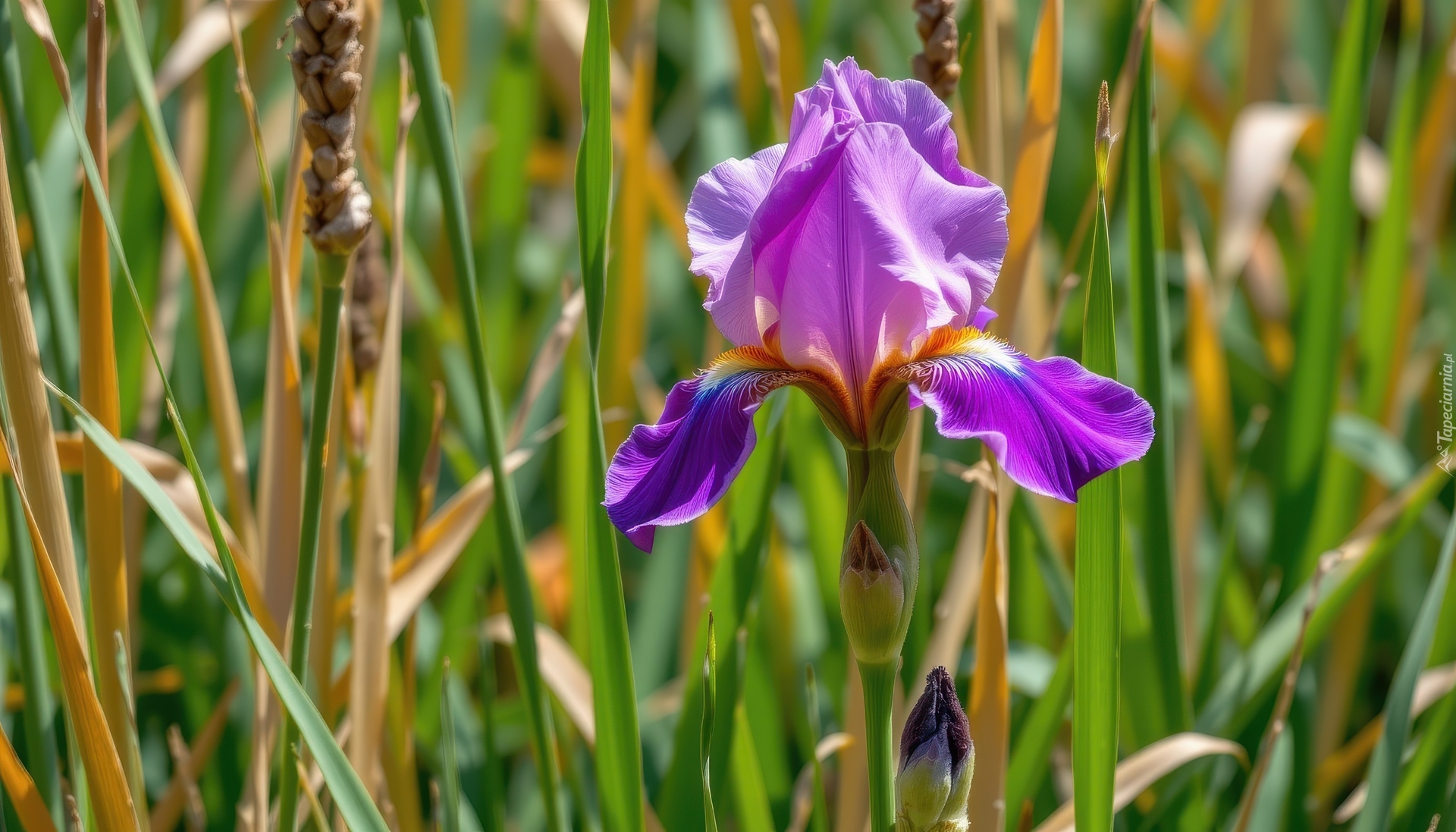 Edytor tapety: Fioletowy irys w trawie w zbliżeniu