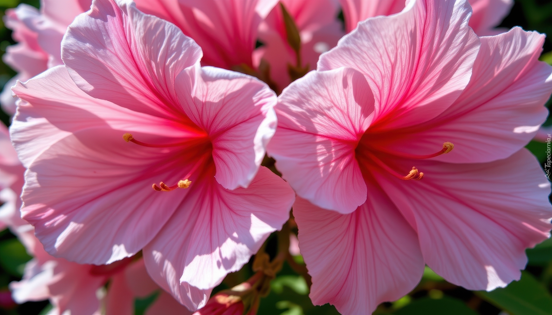 Edytor tapety: Dwa różowe kwiaty azalii w zbliżeniu