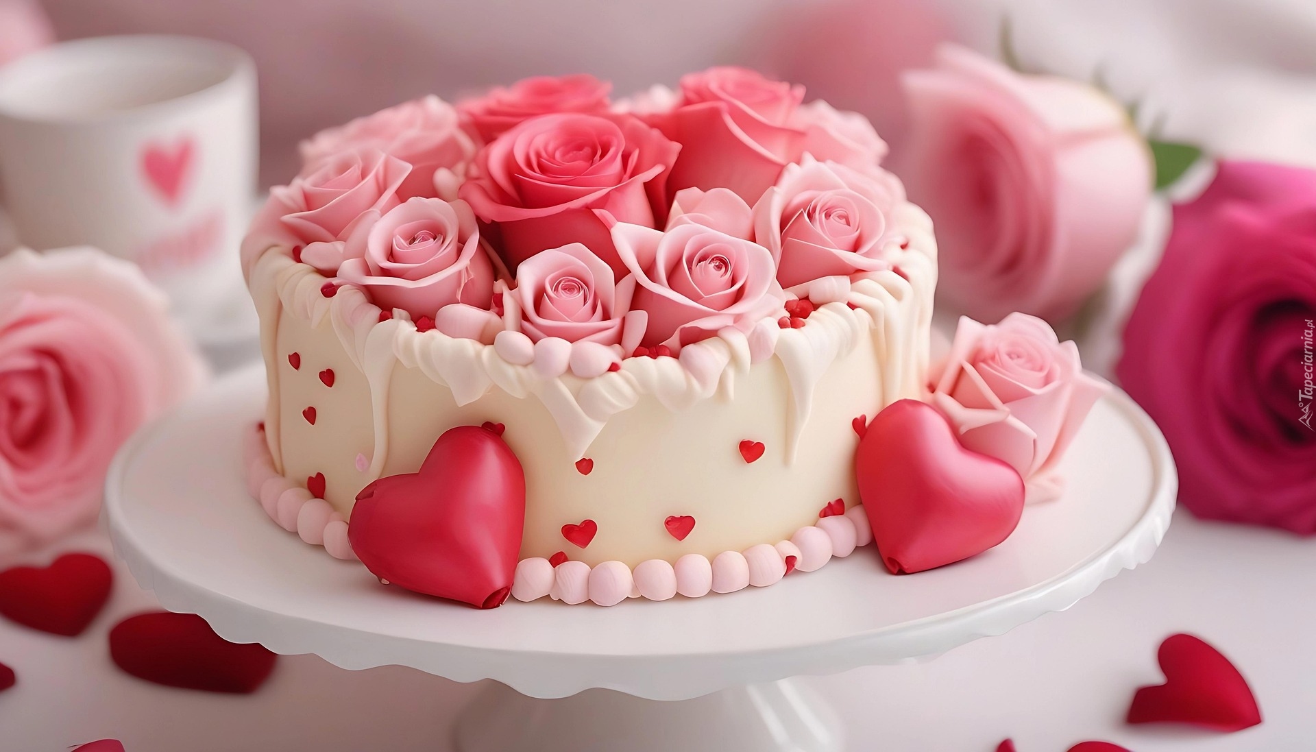 Edytor tapety: Tort udekorowany różami i serduszkami