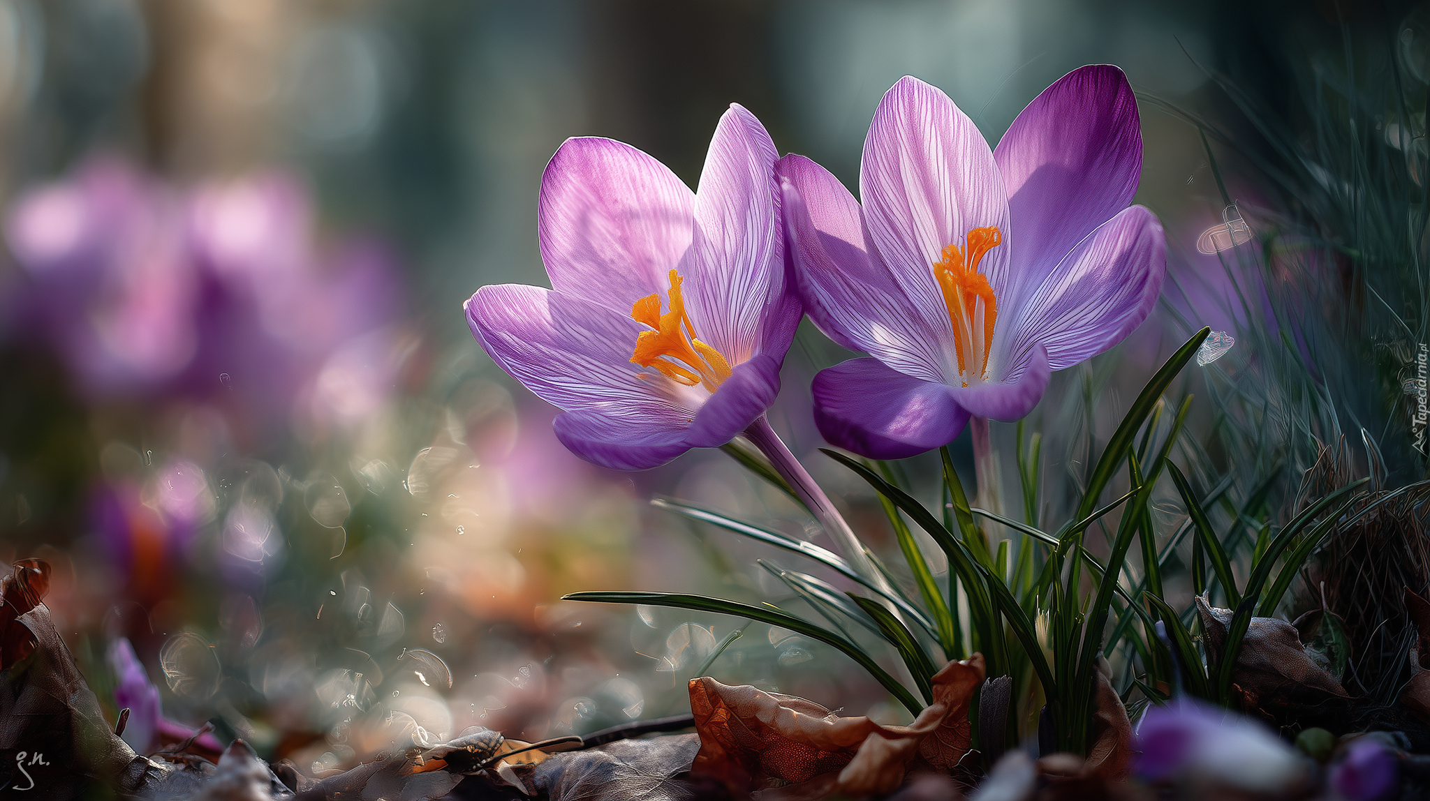 Edytor tapety: Dwa rozświetlone fioletowe krokusy