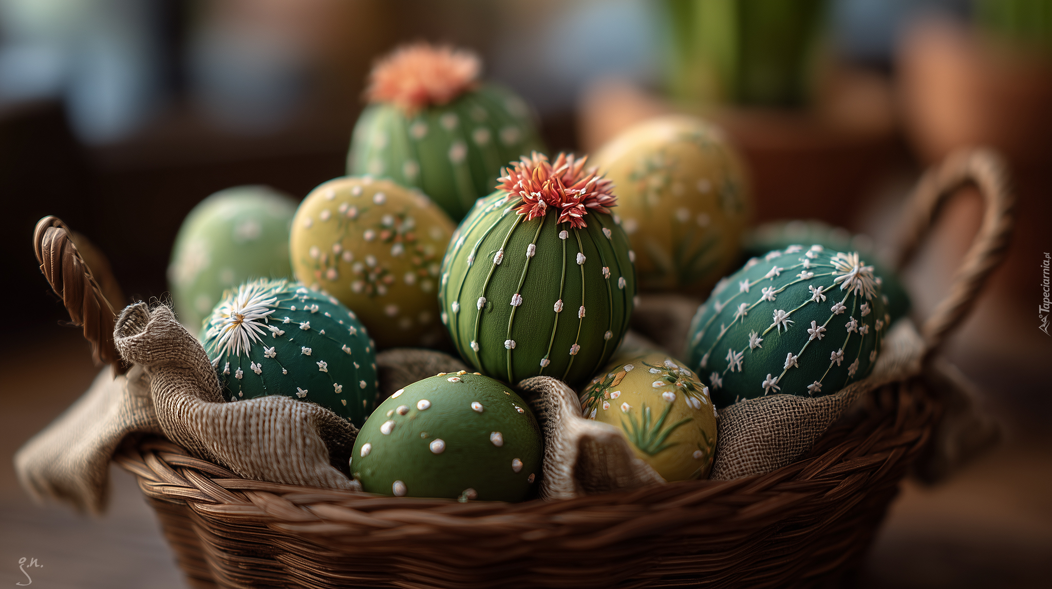Edytor tapety: Zielone pisanki w koszyku