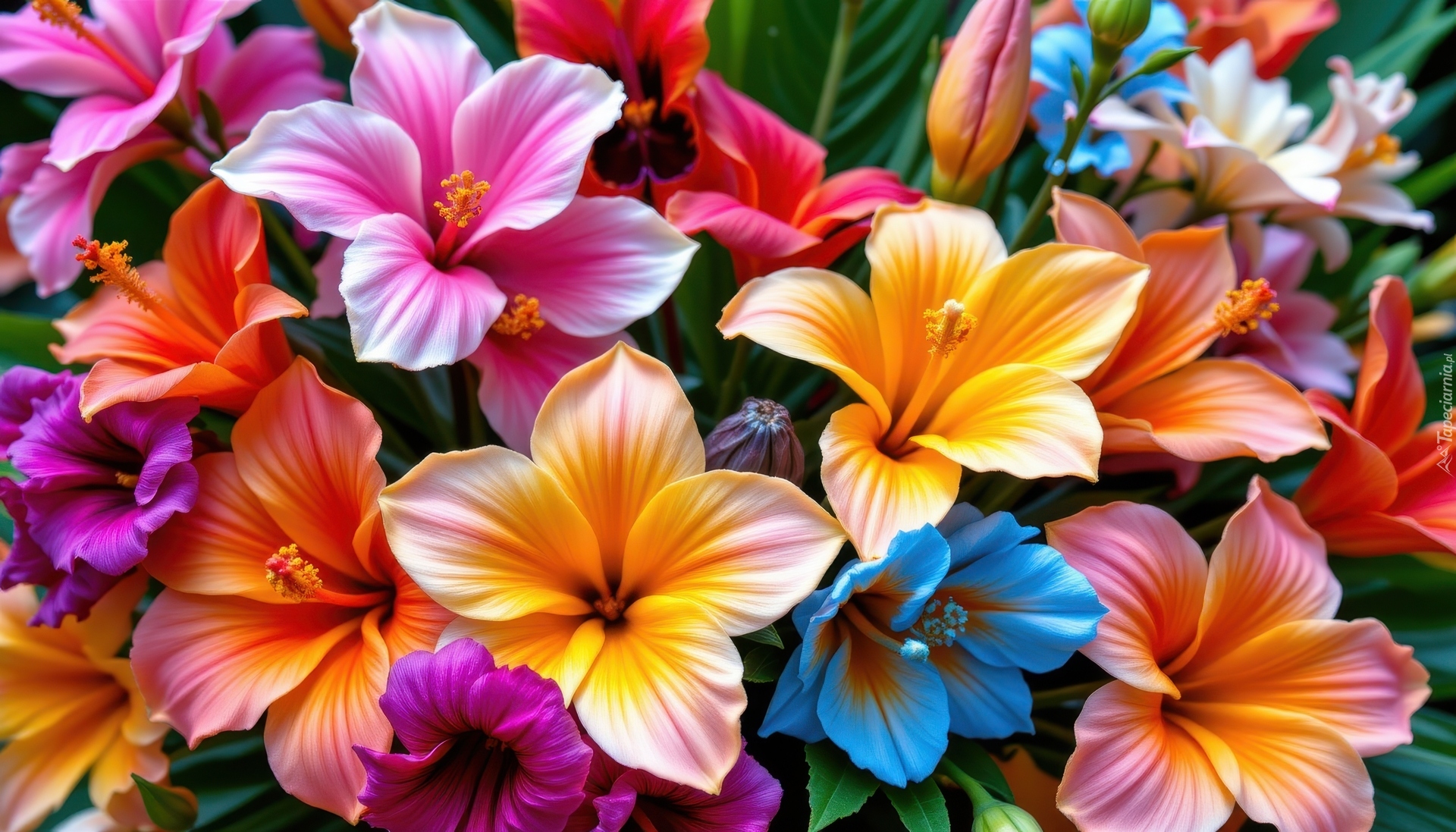 Edytor tapety: Zbliżenie różnych kolorowych kwiatów