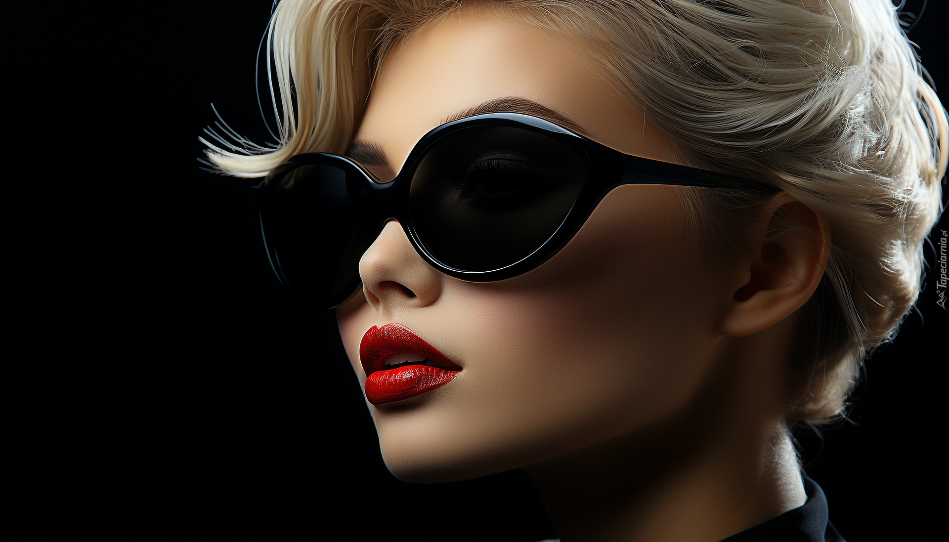 Edytor tapety: Twarz blondynki z krótkimi włosami w czarnych okularach